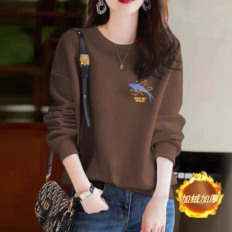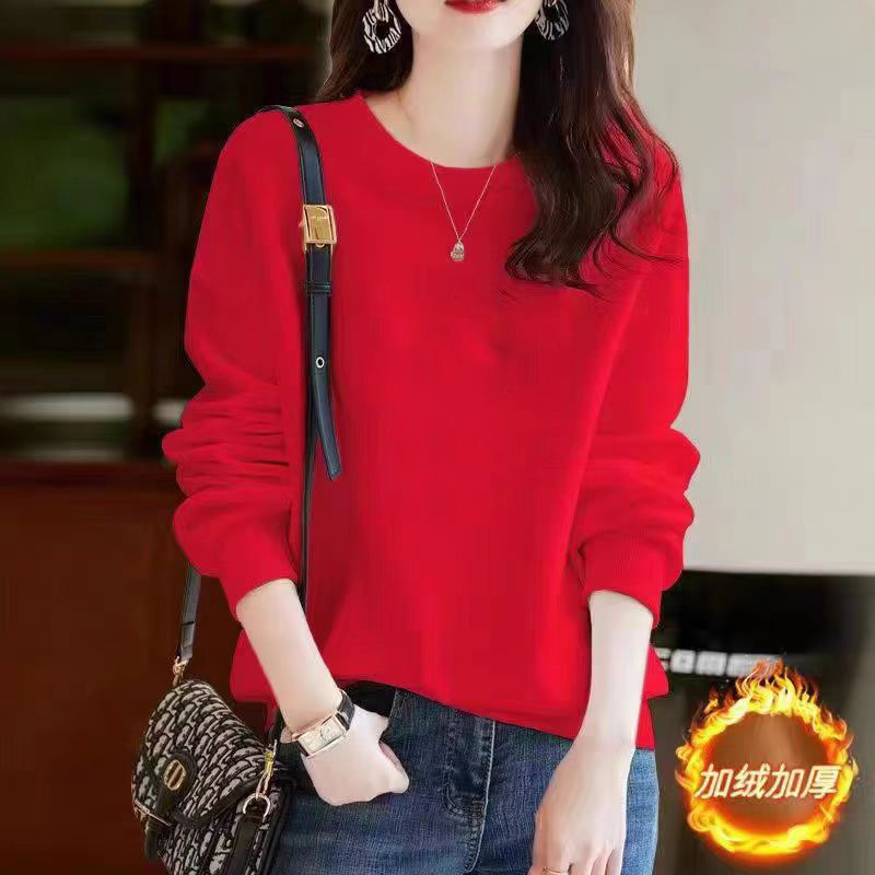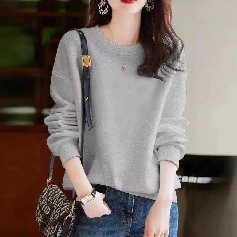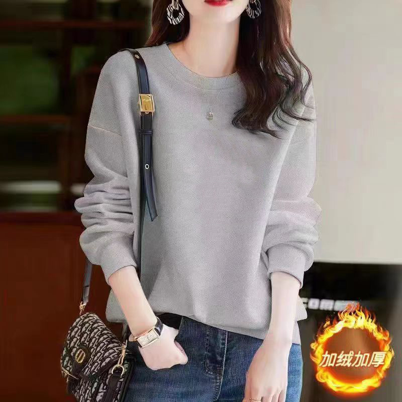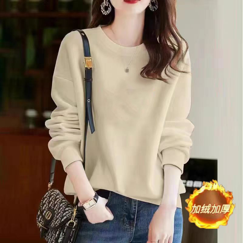 Главная страница > Женская толстовка с круглым вырезом, новинка весны-осени 2024, свободный крой, в корейском стиле, базовая футболка, осенне-зимний стильный топ на флисовой подкладке для повседневной носки