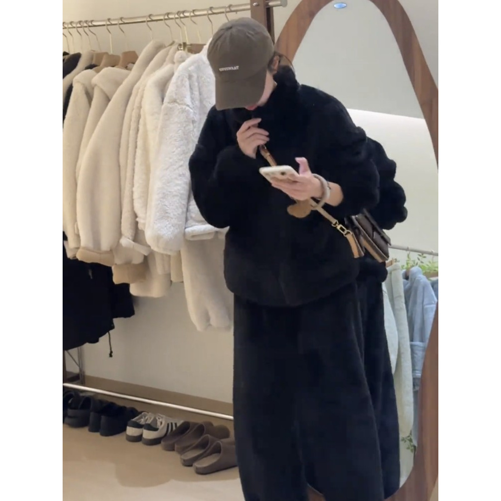 Главная страница > Европейский домашний костюм из утолщенного арктического вельвета для женщин, новинка зимы 2025, повседневный стиль, комплект из двух предметов для миниатюрных женщин