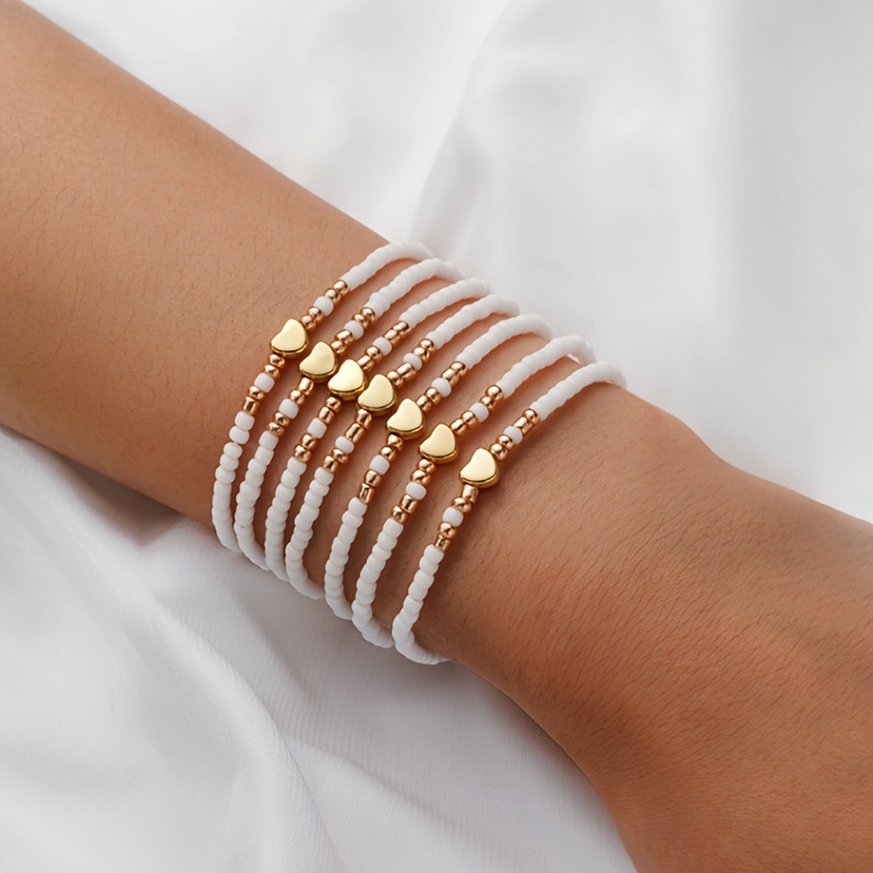 Главная страница > Модный и уникальный комплект из 7 эластичных женских браслетов CCB Heart случайного цвета из бисера, оптовая продажа аксессуаров.