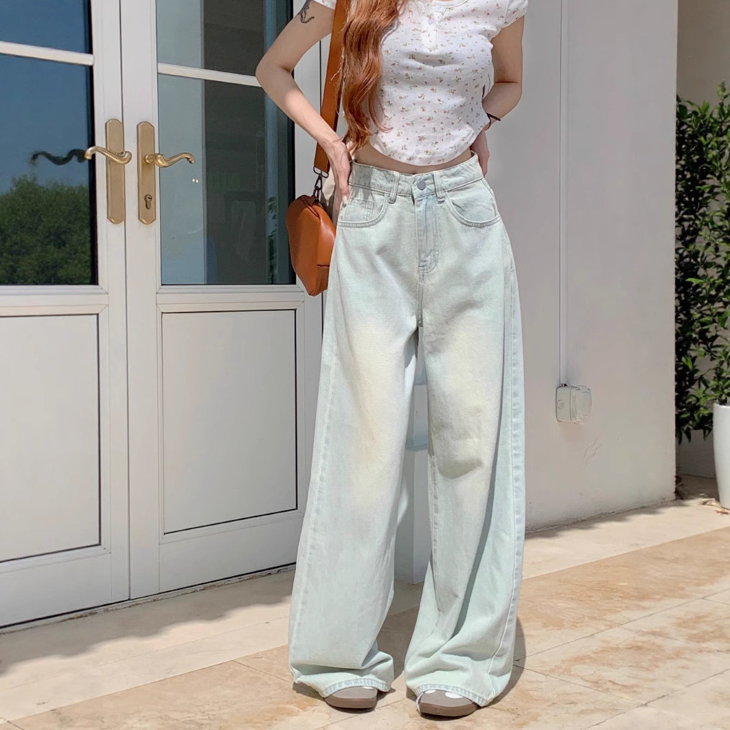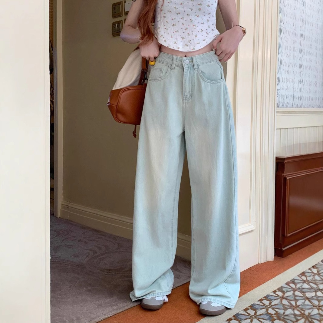 Главная страница > Женские джинсы больших размеров желтого цвета, лето 2025, новые свободные широкие брюки с высокой талией, длинные брюки
