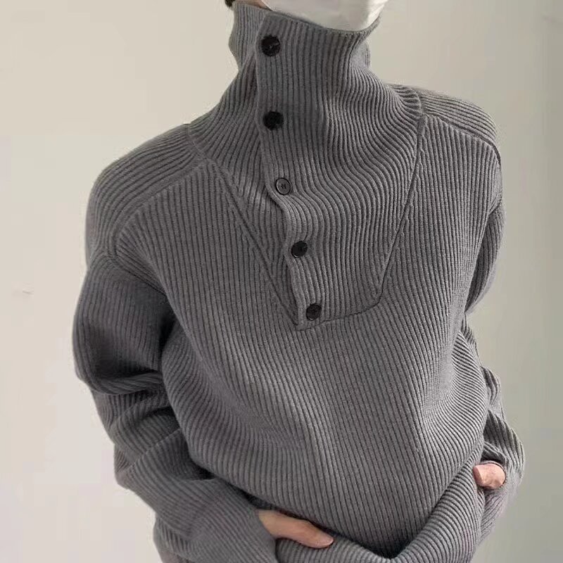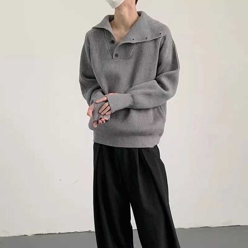 Главная страница > Модный мужской элегантный свитер с высоким воротом на пуговицах в Корейском стиле, Осень-зима 2024, модный универсальный свободный модный свитер для мужчин