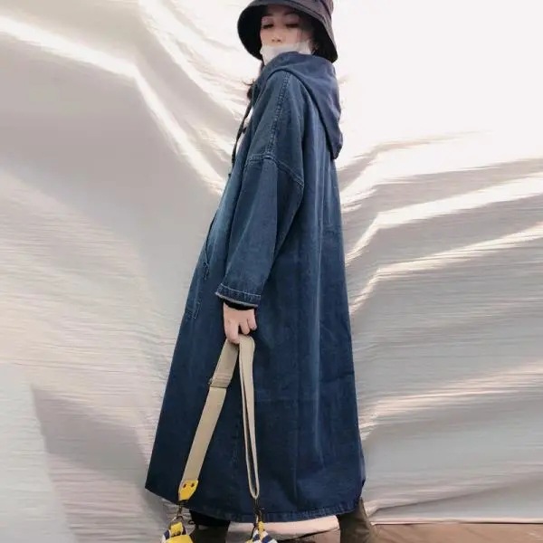 Главная страница > Оригинальное осенне-зимнее платье в стиле Мори, винтажное женское свободное джинсовое платье больших размеров с капюшоном и длинными рукавами, повседневное универсальное модное