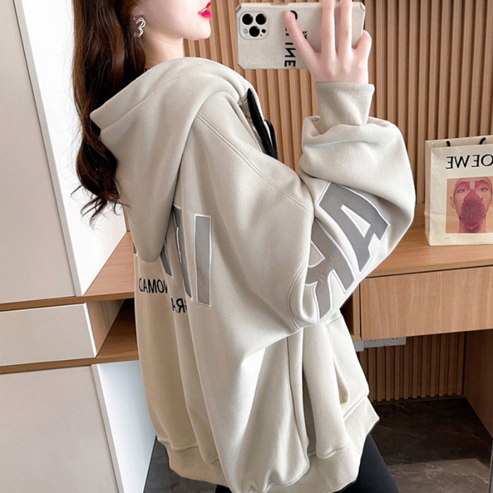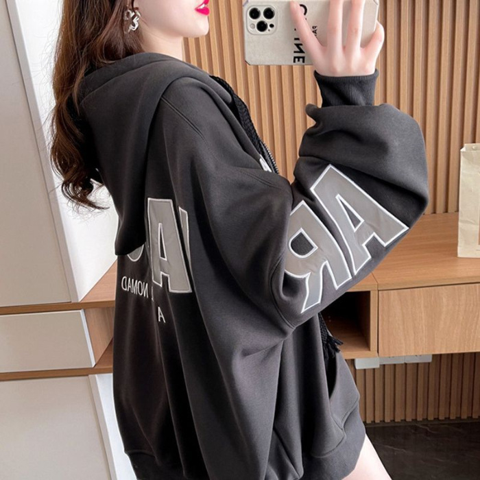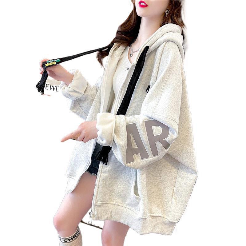 Главная страница > Новая корейская версия женского платья большого размера тонкий свободный дикий свитер с капюшоном кардиган с вышивкой куртка на молнии весной 2025 года