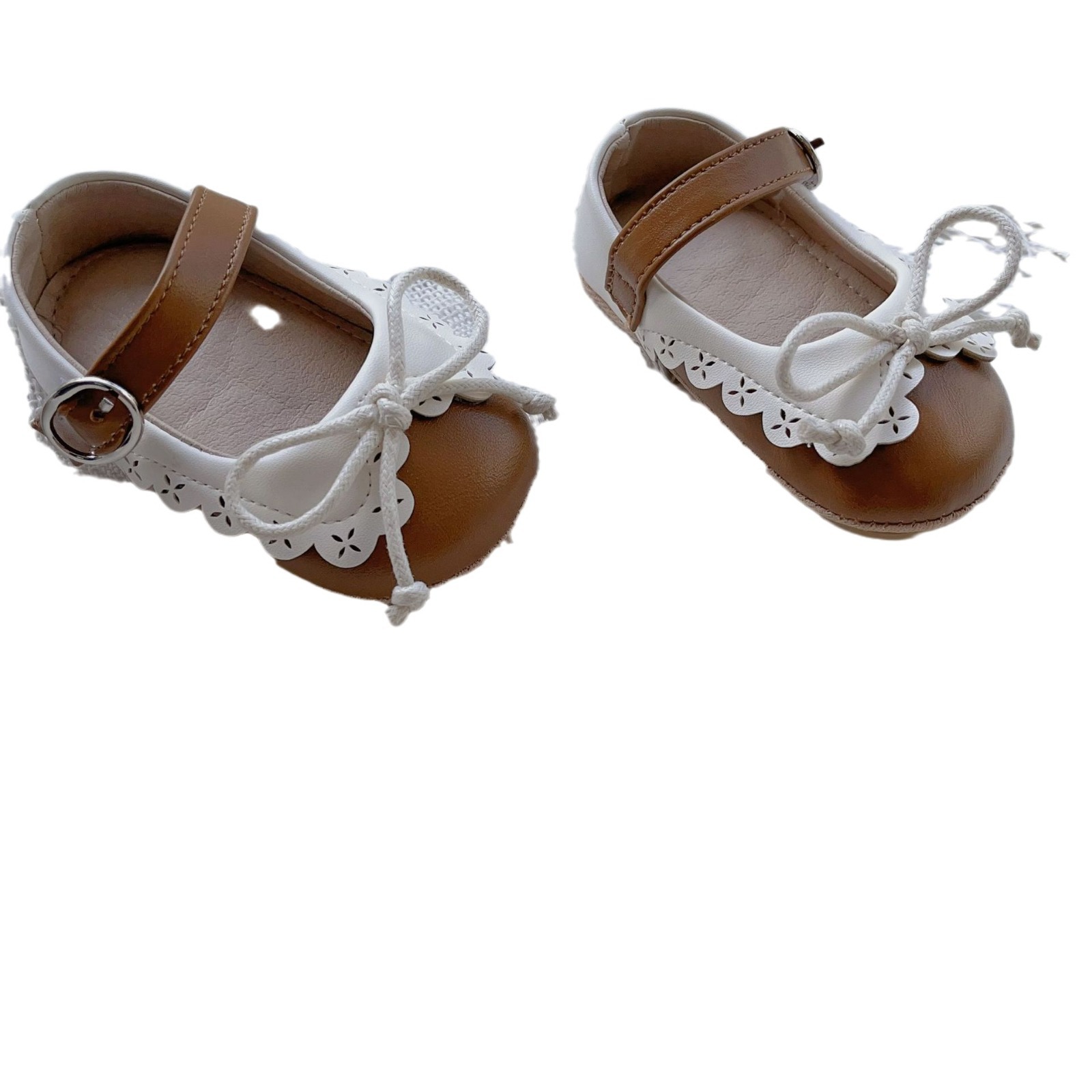 Новая обувь для маленьких девочек с мягкой подошвой, милые туфли принцессы с бантом, Нескользящие одиночные туфли на липучке контрастного цвета в западном стиле