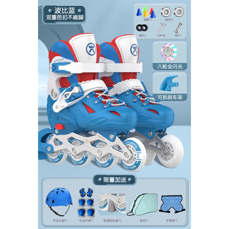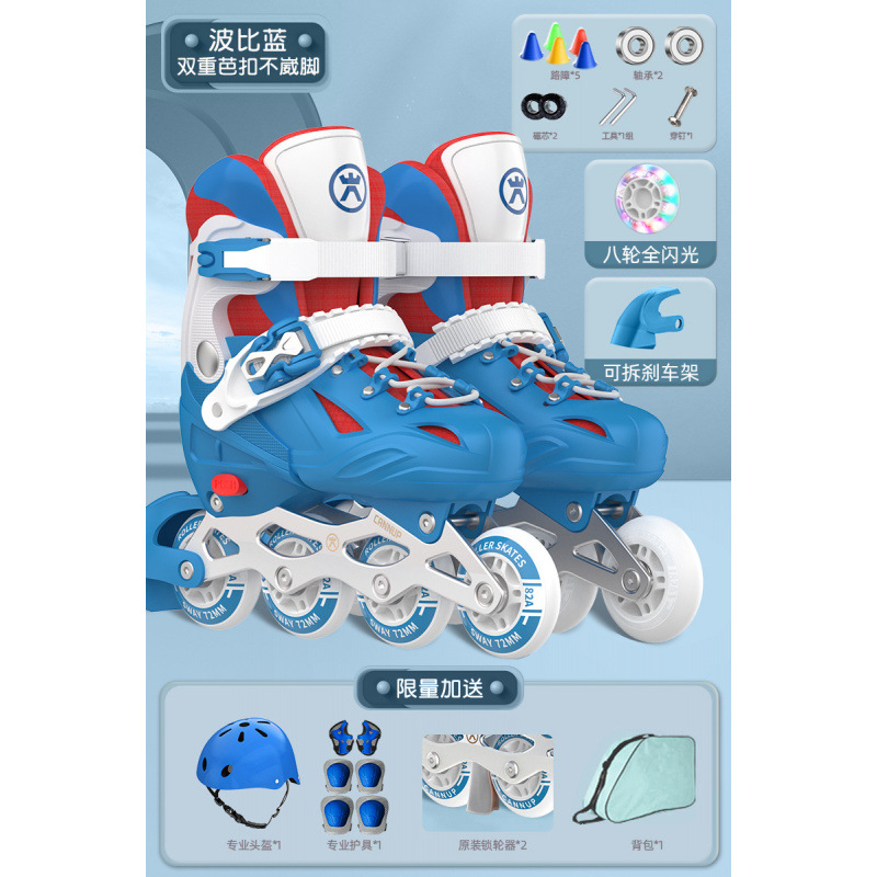 Новичок·Защита от падения [Синий·Двойная пряжка без растяжений ног] Замок на колесе + подарочный пакет + рюкзак