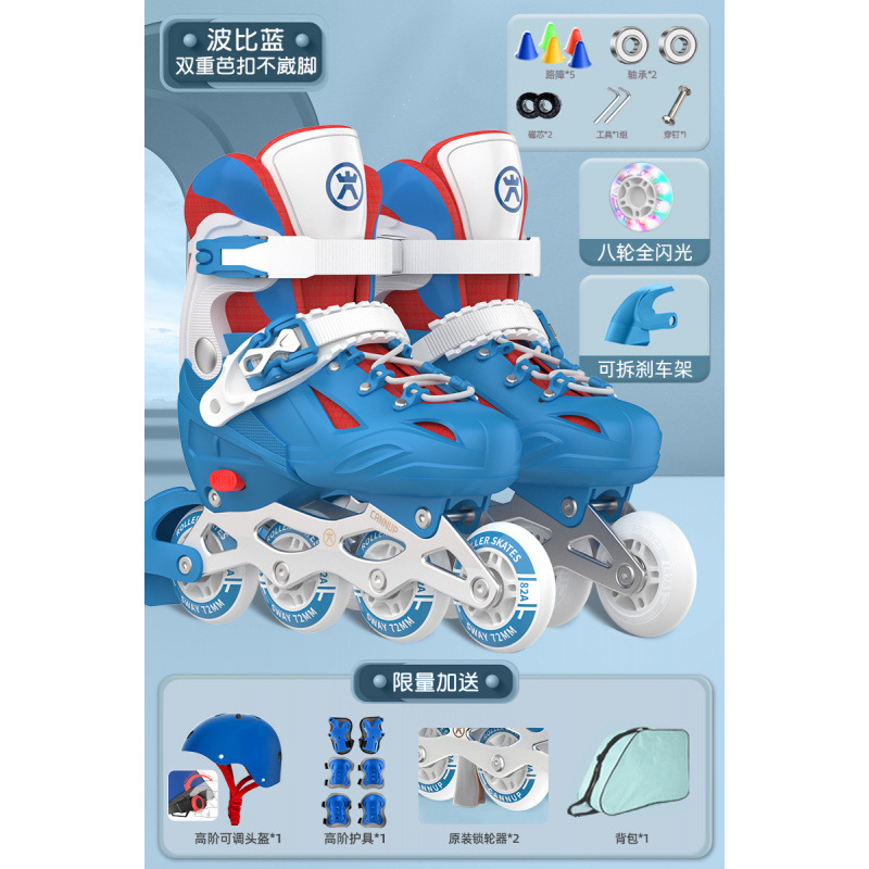 Новичок · Защита от падения [Синий · Двойная пряжка без растяжений ног] Защита шлема + рюкзак + блокировка колеса