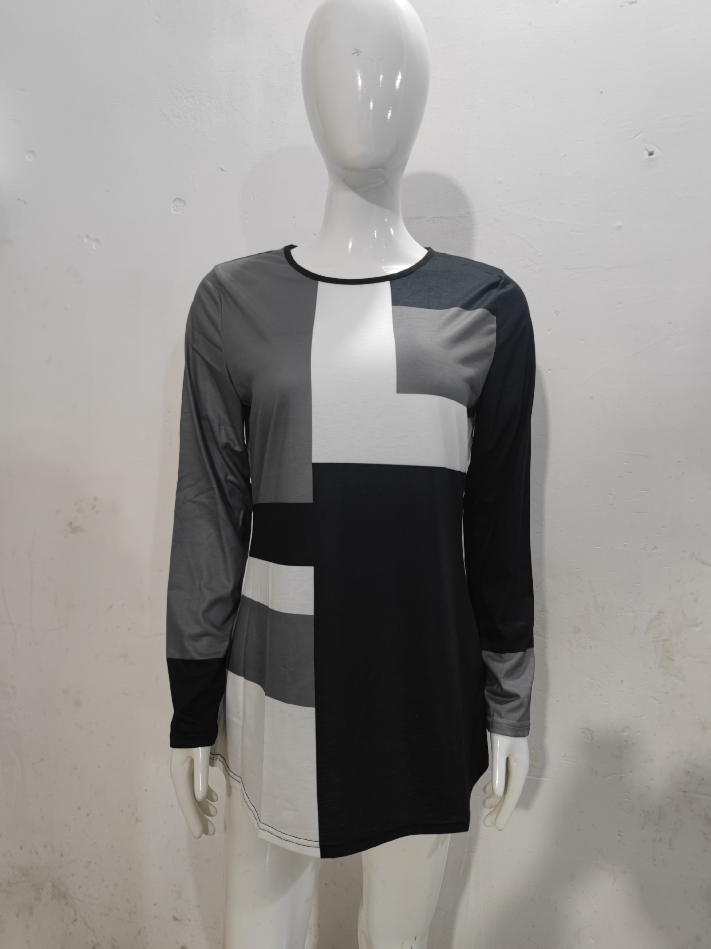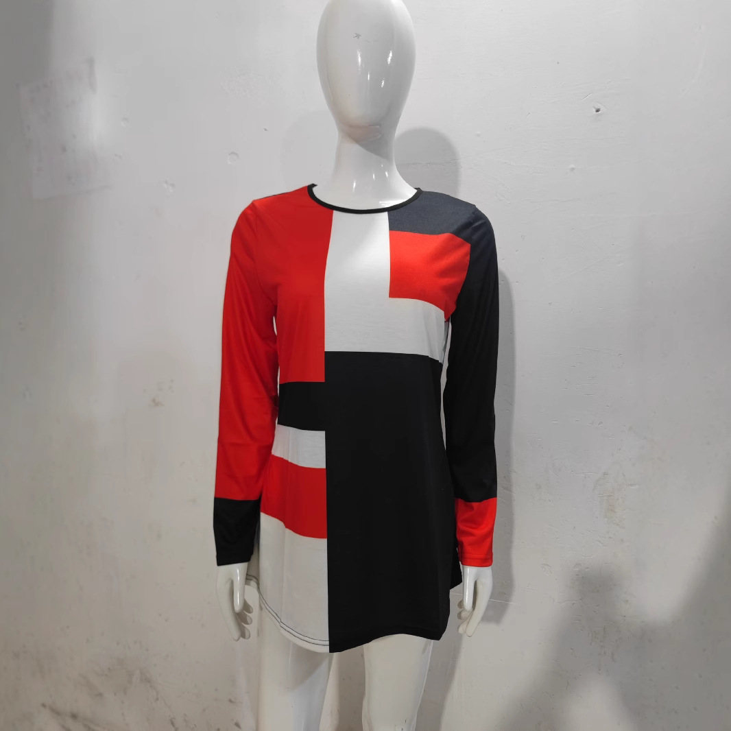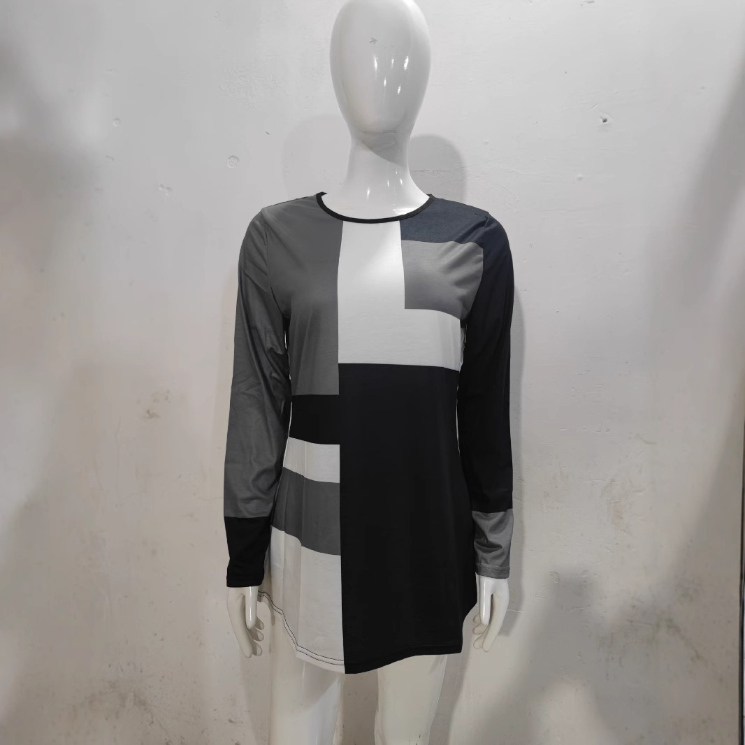 Женская одежда для трансграничной торговли, новый стиль, модный и популярный принт, поддержка продаж на различных платформах, футболка с круглым вырезом и длинным рукавом, в наличии.