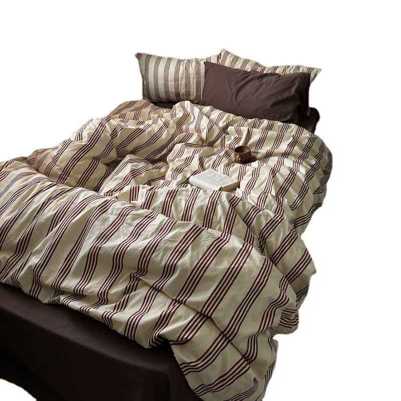 Главная страница > Американский стиль ретро простой полосатый хлопковый постельный комплект из четырех предметов 100 хлопковая простыня покрывало для спальни Комплект из трех предметов 4