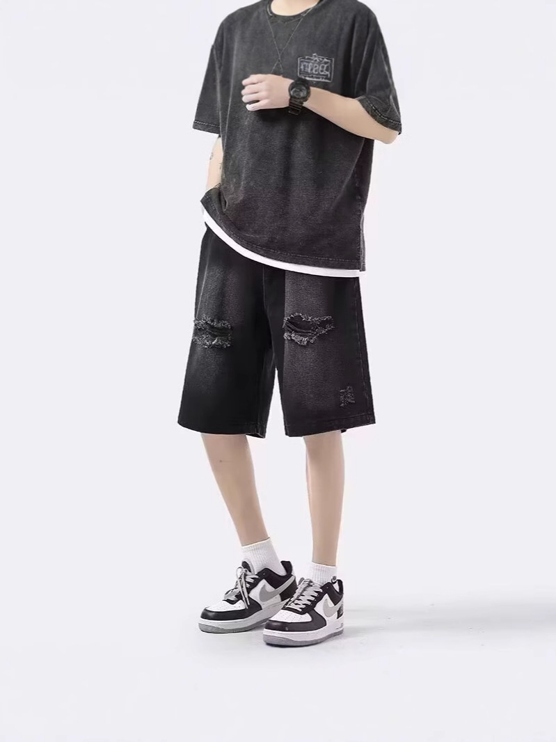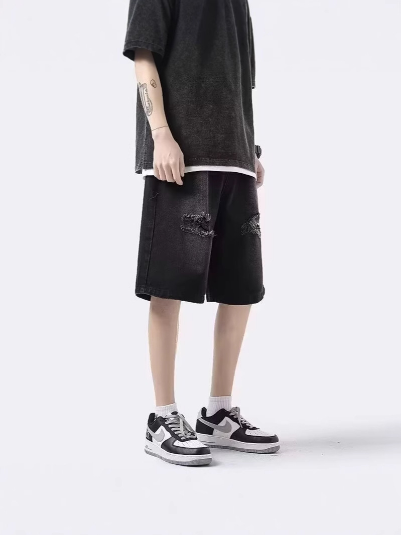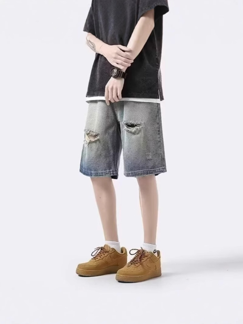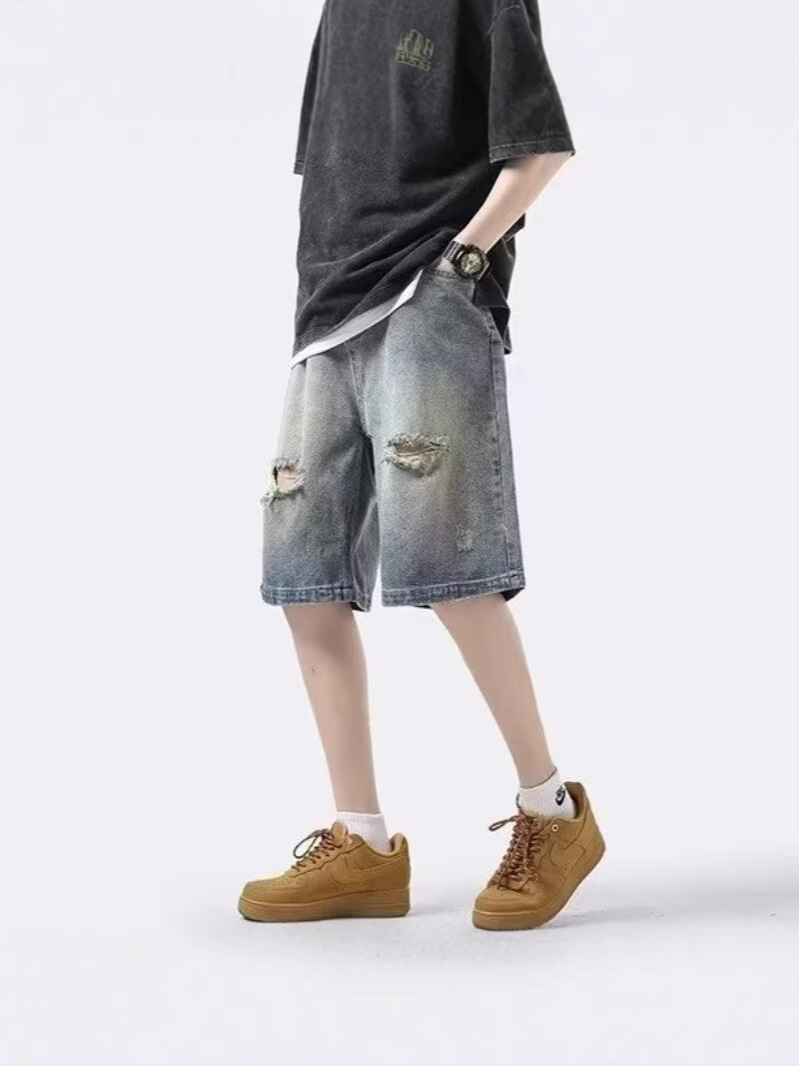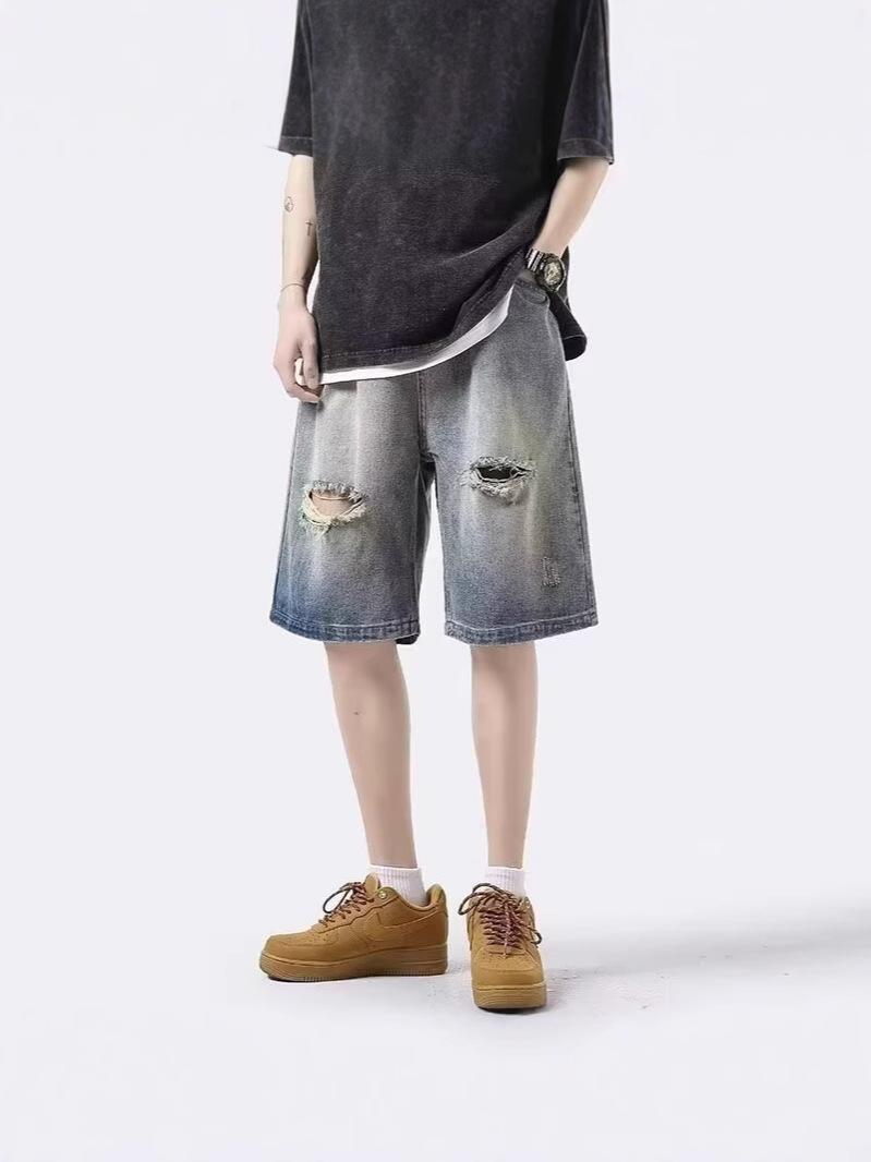 Главная страница > FUIV дырочные джинсовые шорты для мужчин летом тонкие американские высокие штаны на улице