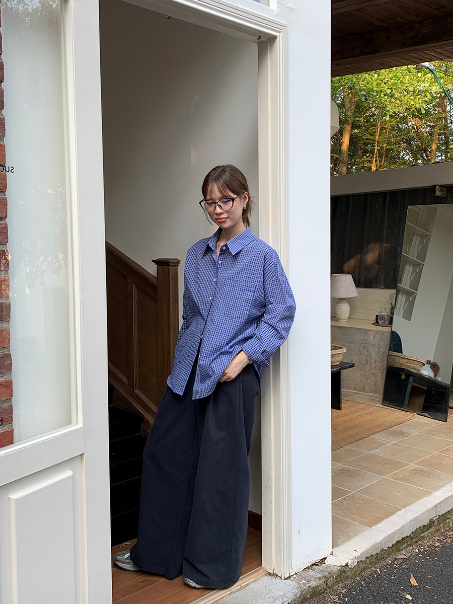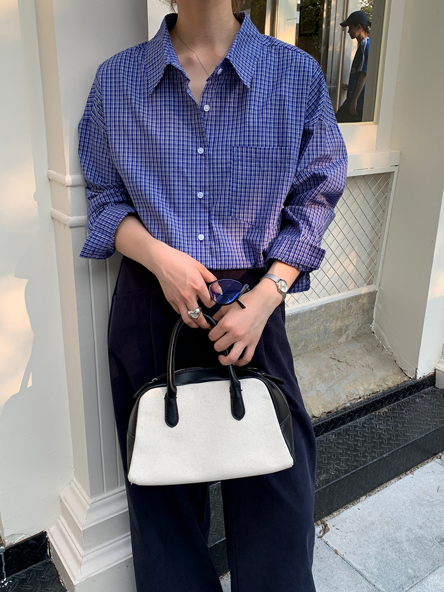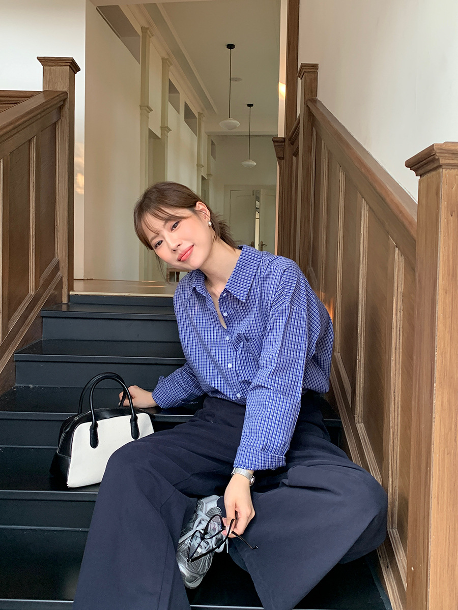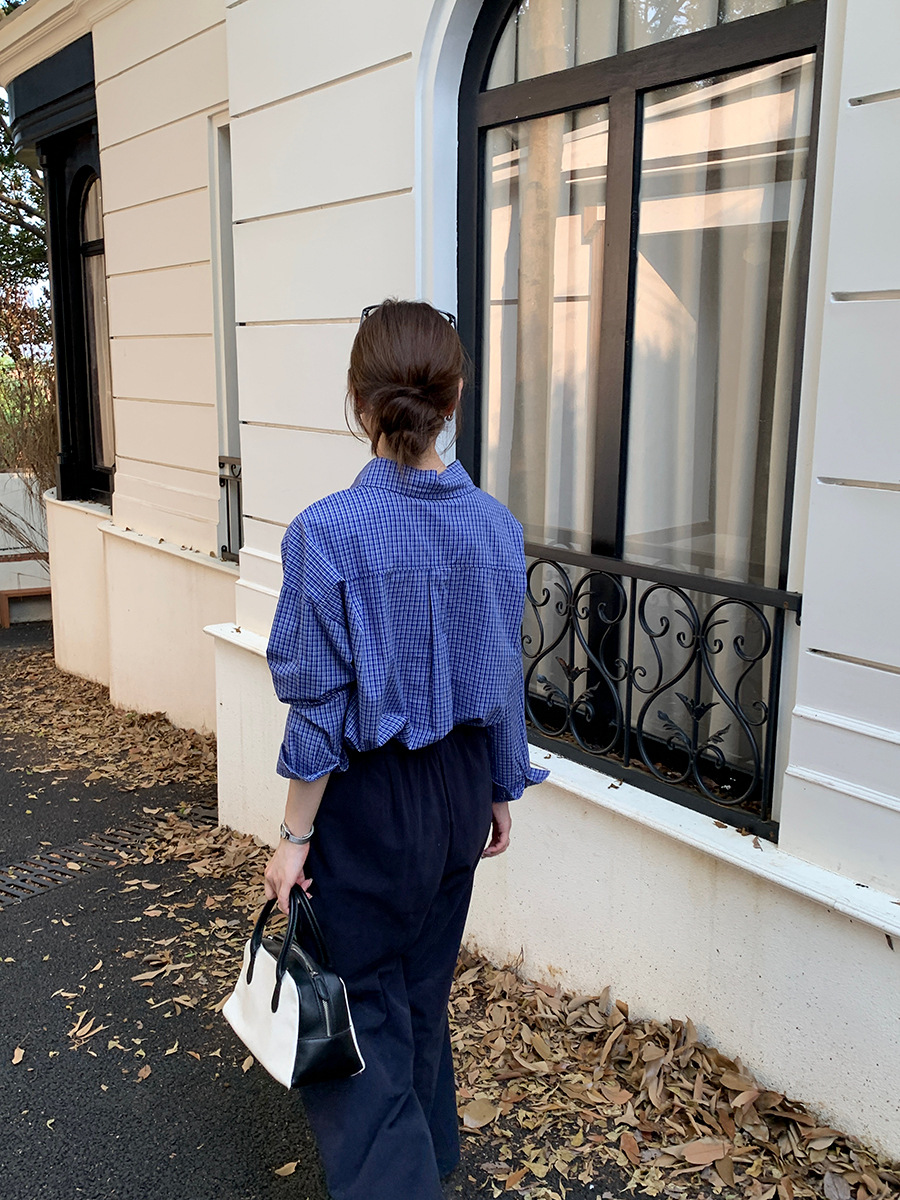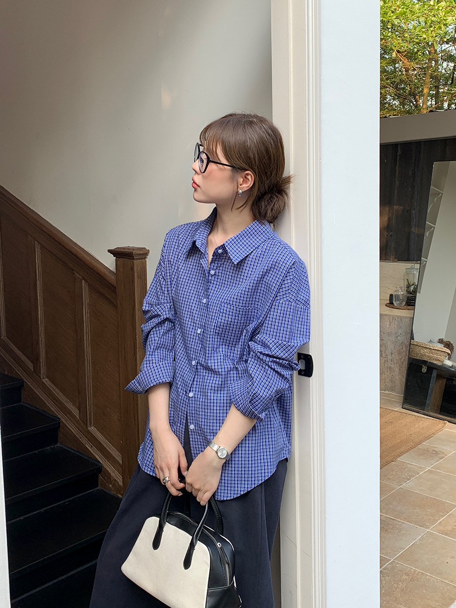 Главная страница > [Ou Fan] miu модная синяя клетчатая рубашка женская 2025 четыре сезона новый свободный длинный рукав топ 2500