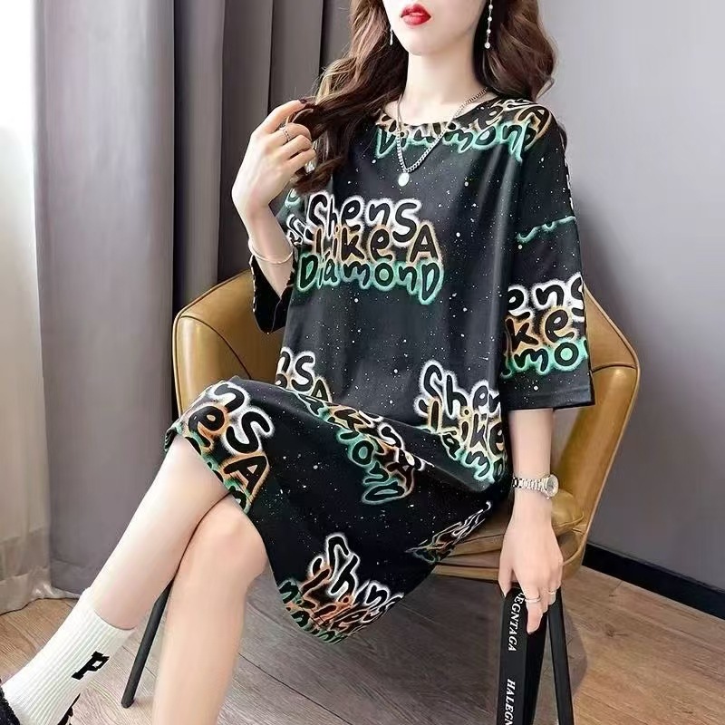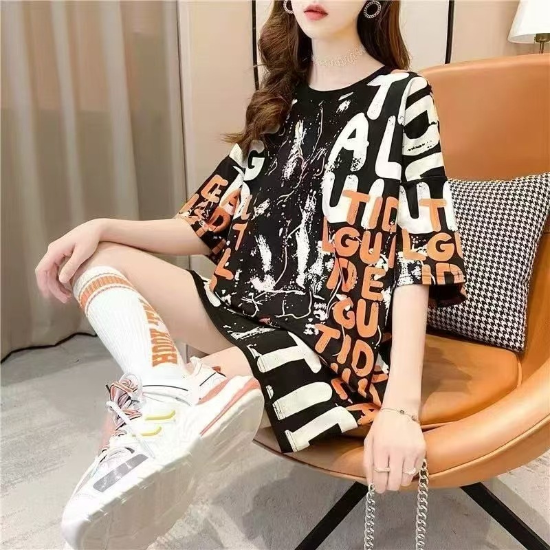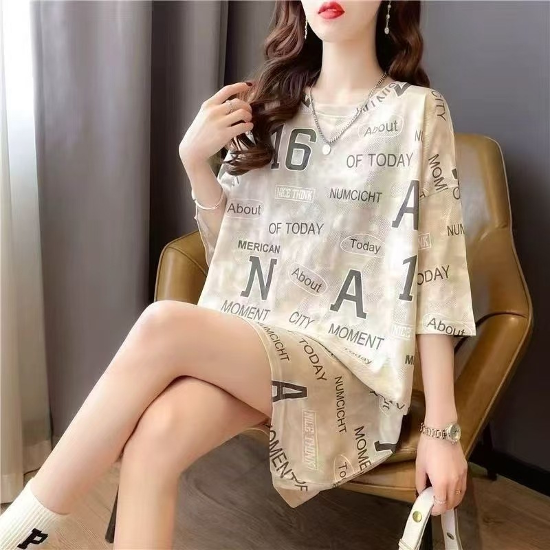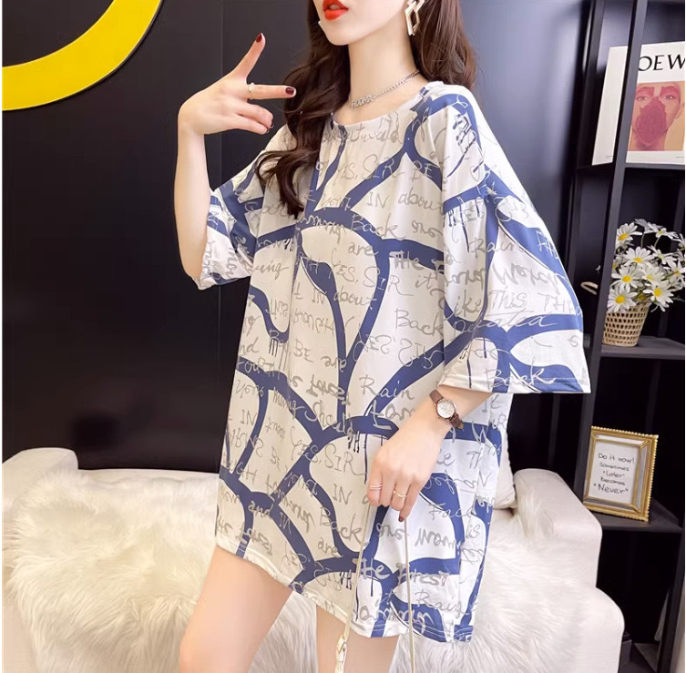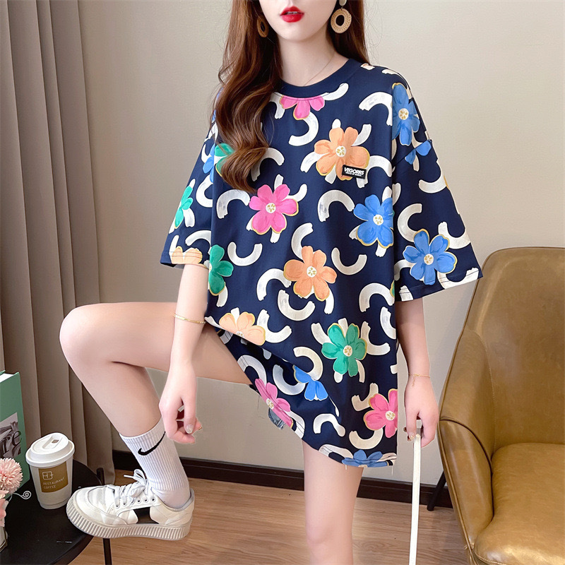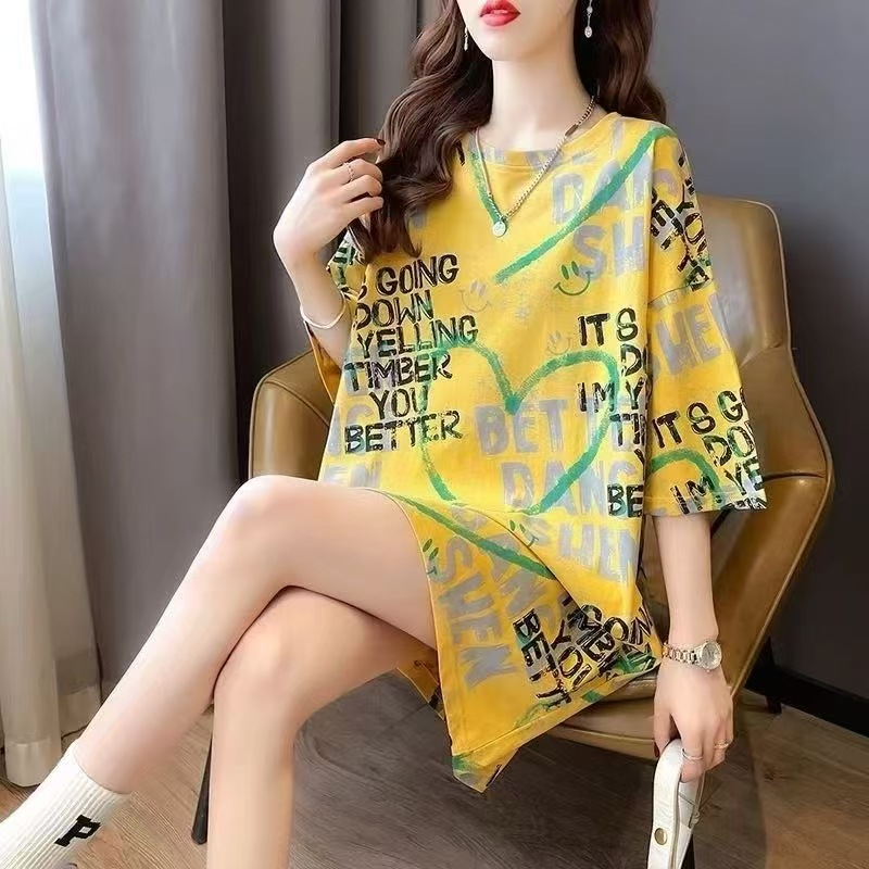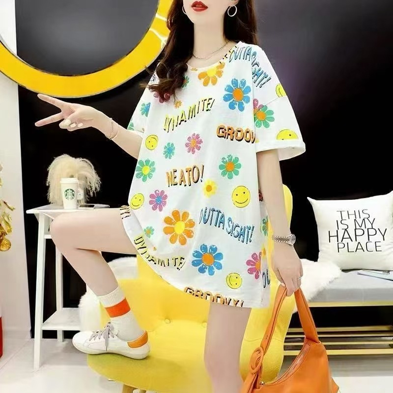 2024 новая летняя футболка большого размера женская рубашка с короткими рукавами большого размера женская одежда тонкая средняя и длинная свободная корейская рубашка с принтом
