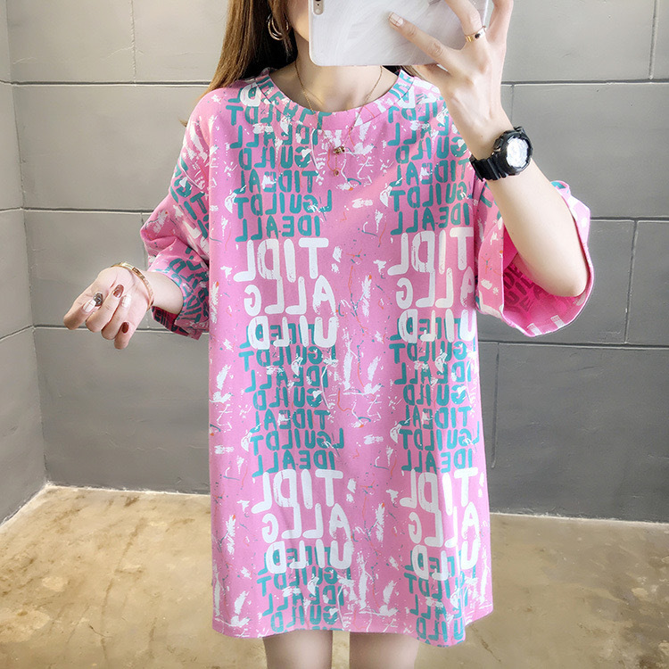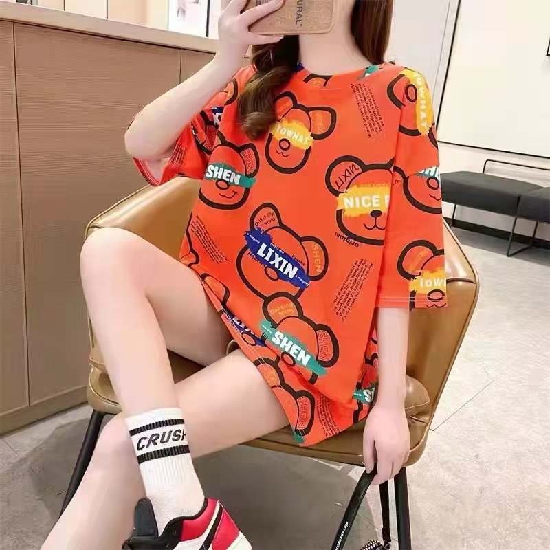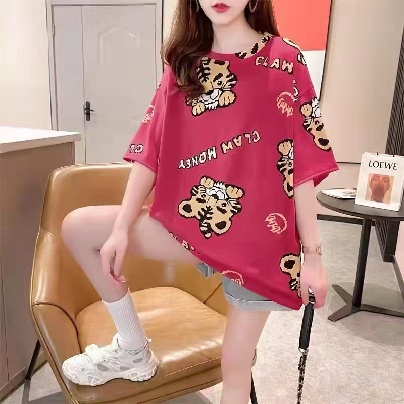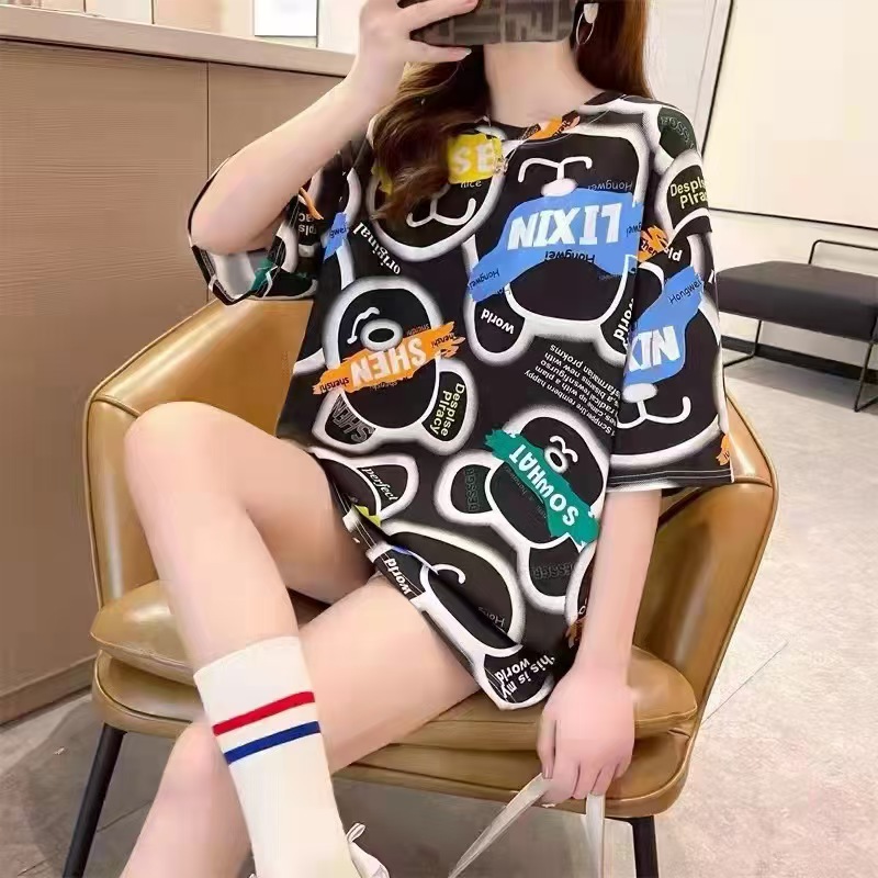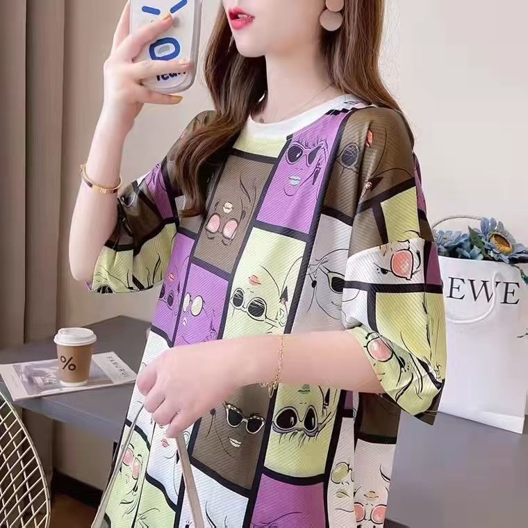 Главная страница > 2024 новая летняя футболка большого размера женская рубашка с короткими рукавами большого размера женская одежда тонкая средняя и длинная свободная корейская рубашка с принтом