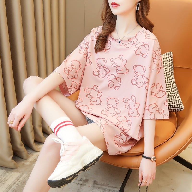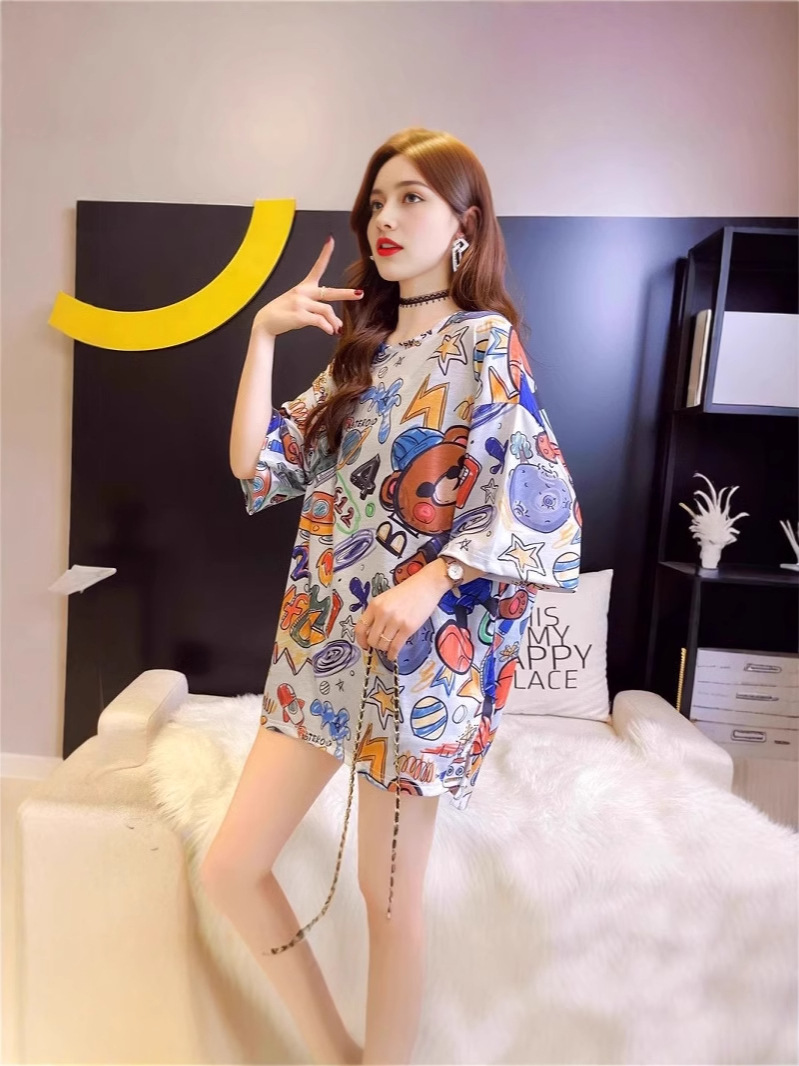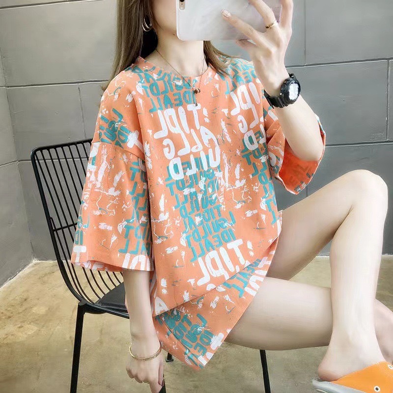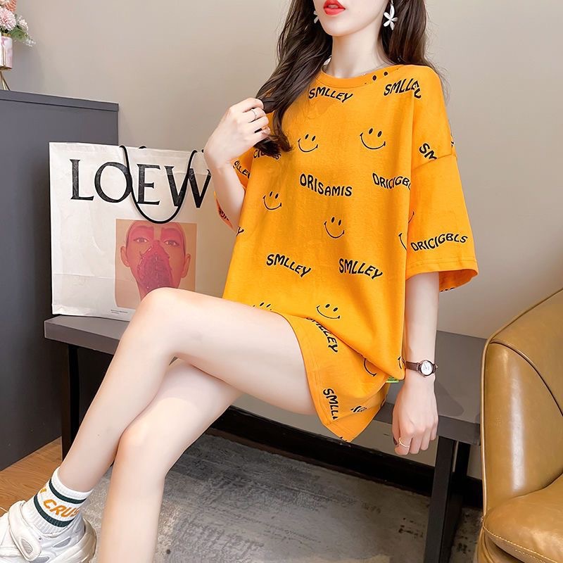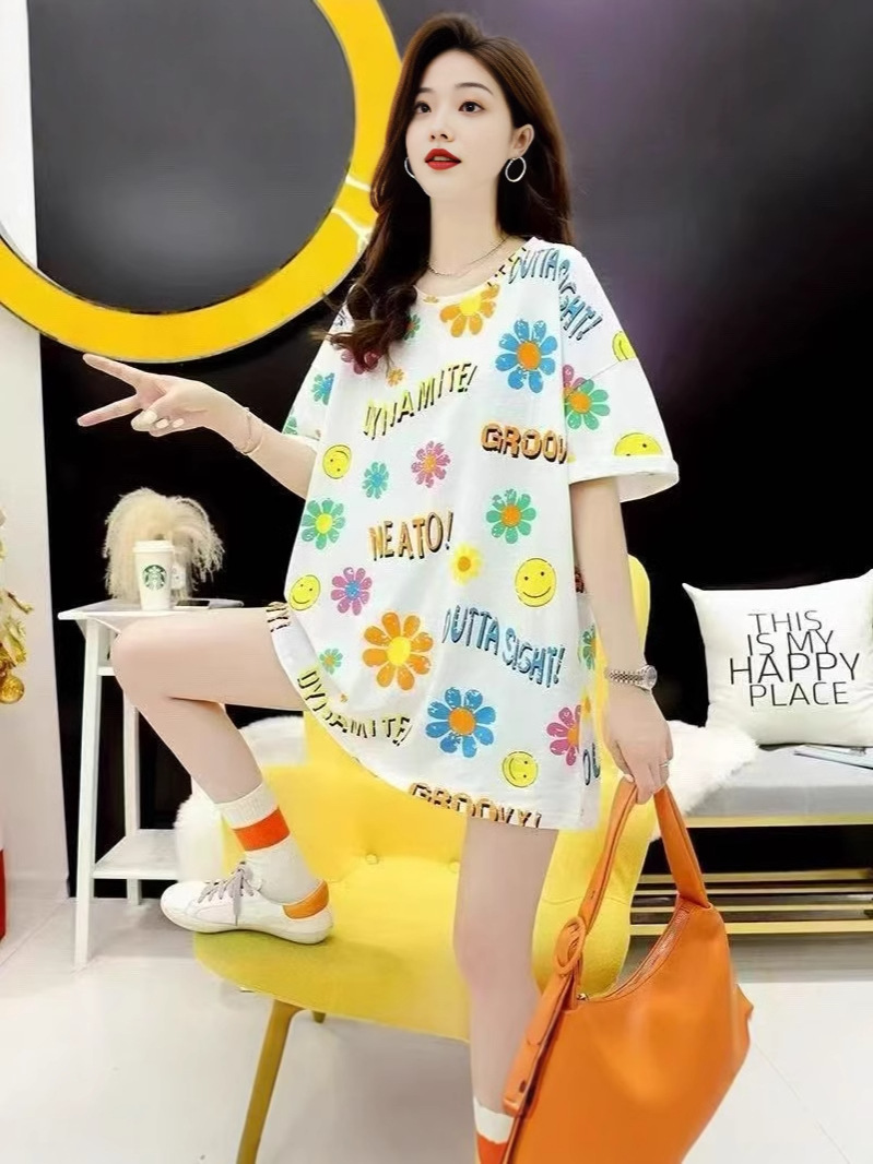 Главная страница > 2024 новая летняя футболка большого размера женская рубашка с короткими рукавами большого размера женская одежда тонкая средняя и длинная свободная корейская рубашка с принтом