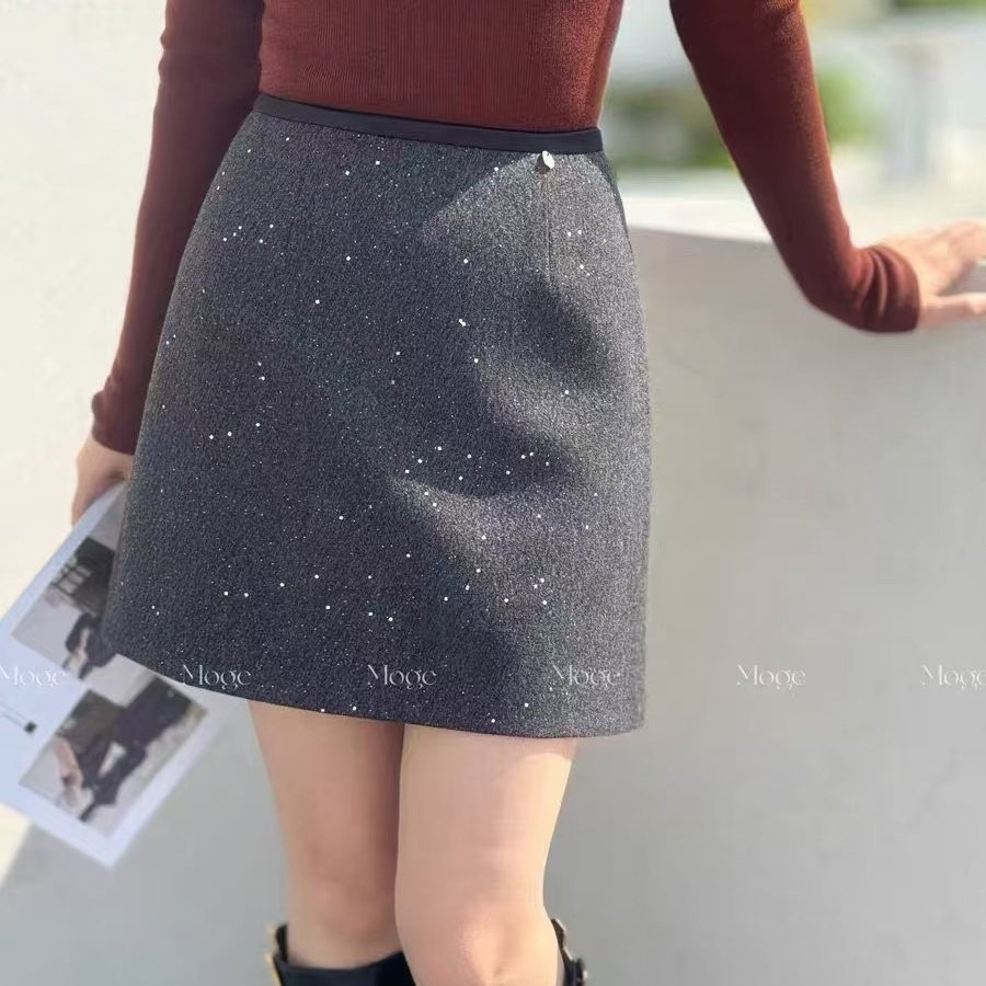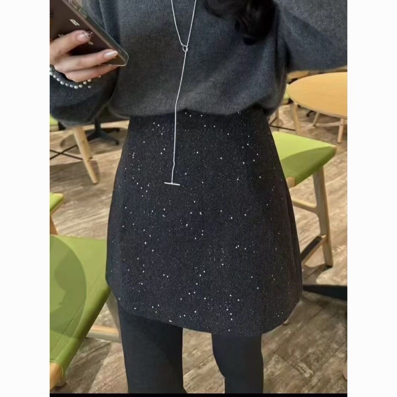 Главная страница > Little Xiangfeng блестки шерстяная юбка-бюст осень-зима новая корейская версия юбки с высокой талией