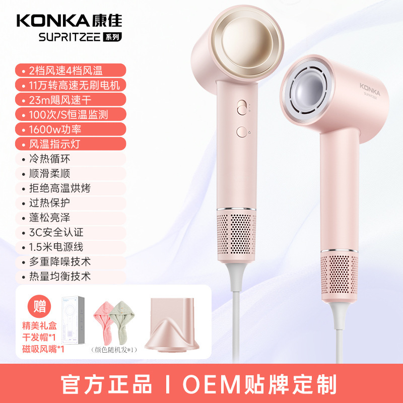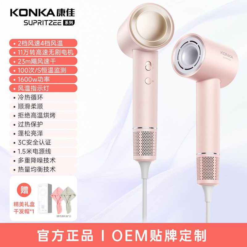 Конка [D4-J2] Розовый - Шапочка для сушки волос + Высокая скорость 110 000 об/мин + 1600 Вт + Горячий и холодный воздух + Кнопка регулировки температуры и освещения + Элегантная подарочная упаковка