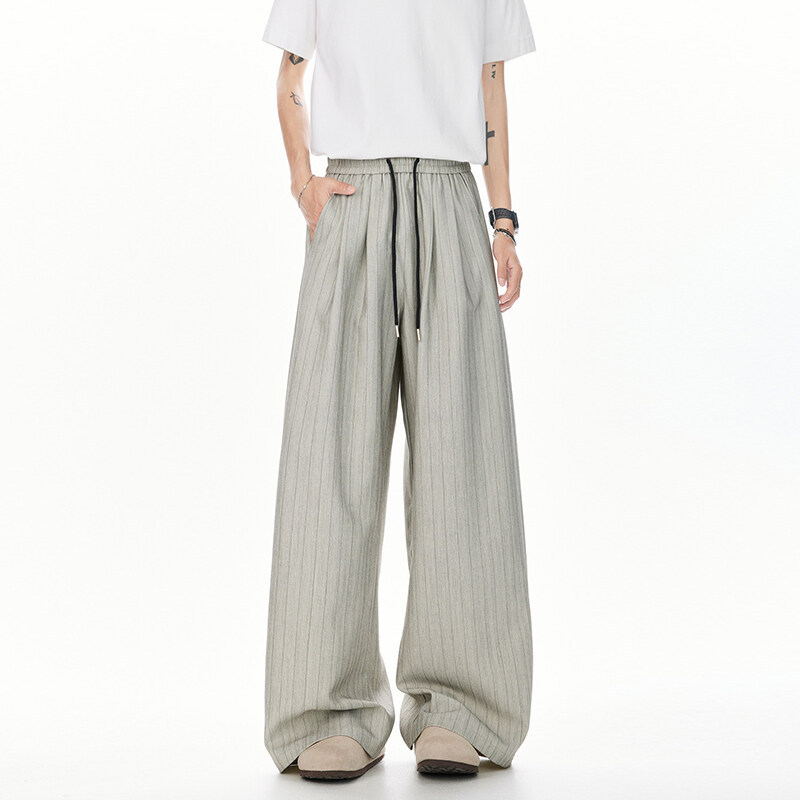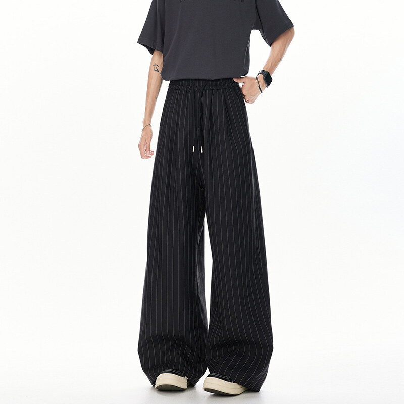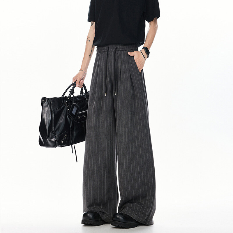 Главная страница > 2025 Весна/Лето Новые мужские брюки Yamamoto в вертикальную полоску Ленивый стиль Драпированные прямые брюки Тонкие повседневные длинные брюки для мужчин.