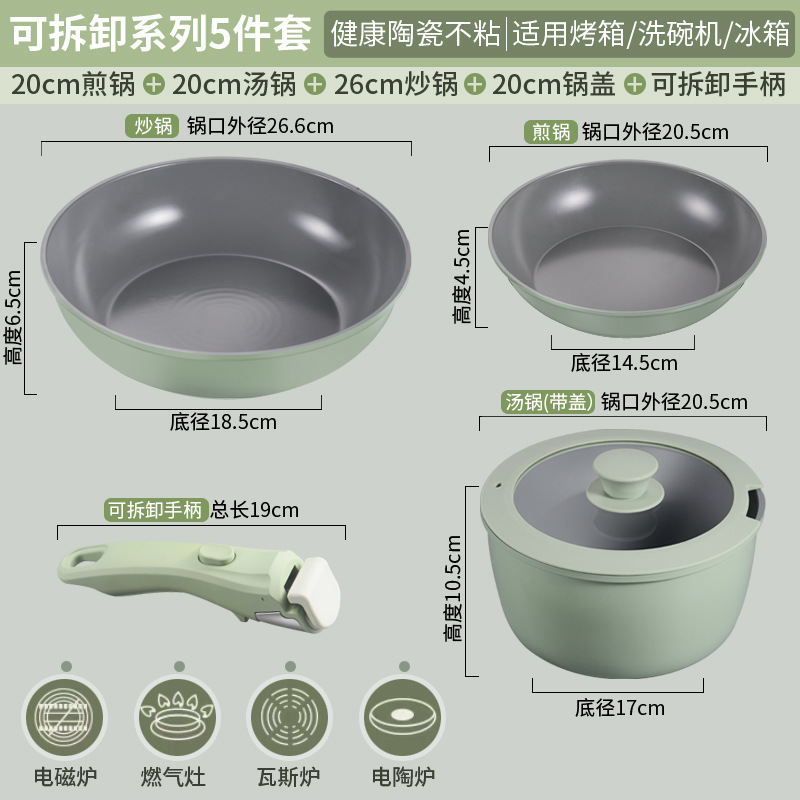 Трансграничный съемный бытовой набор кастрюль, кастрюли с антипригарным покрытием, кастрюли для супа, сковородки, универсальные кастрюли для приготовления пищи
