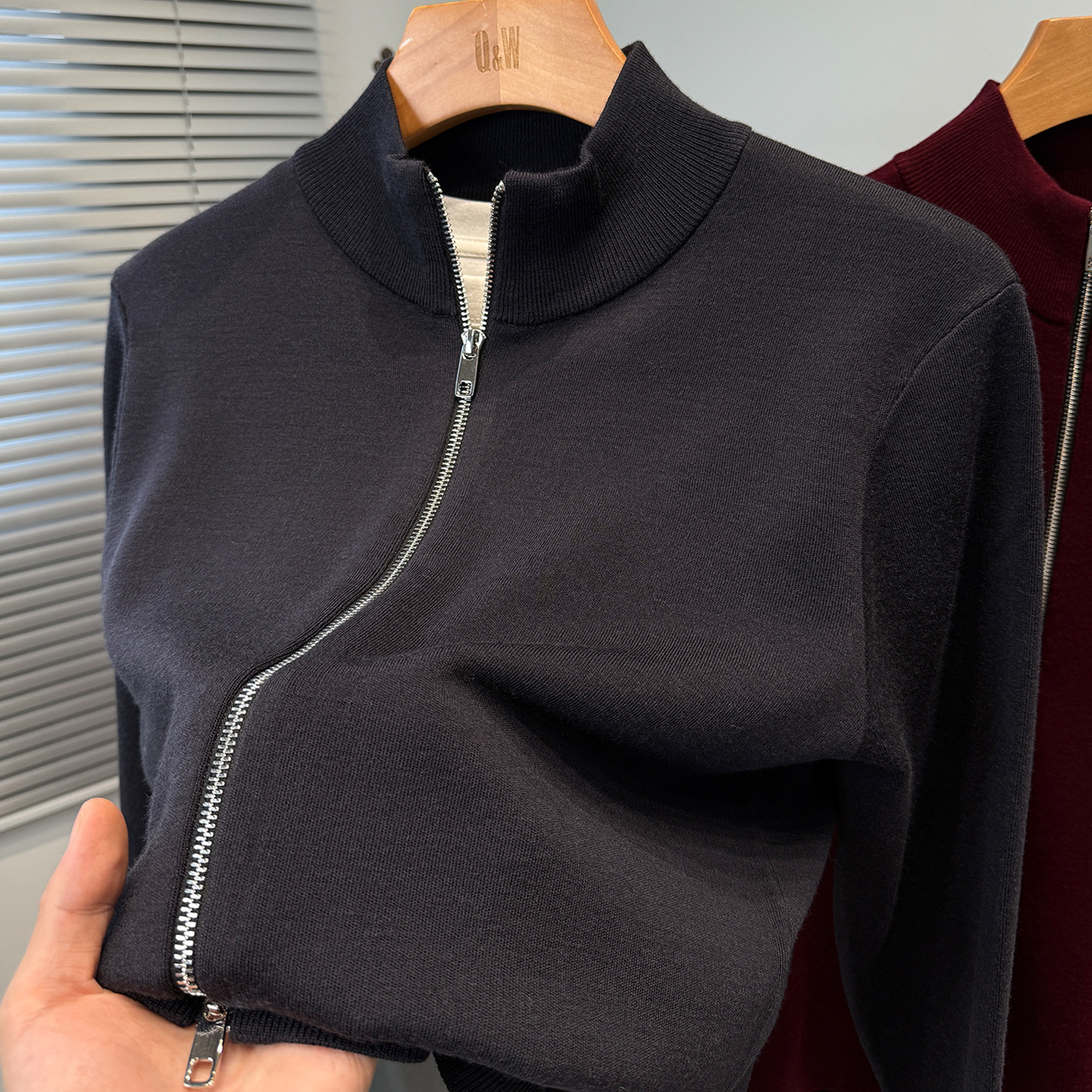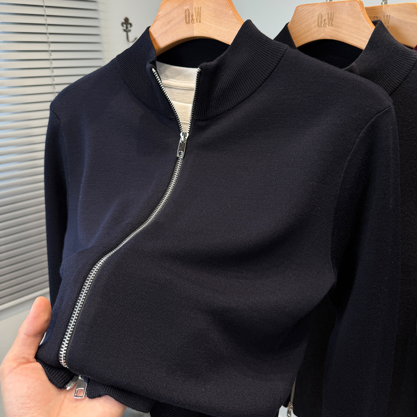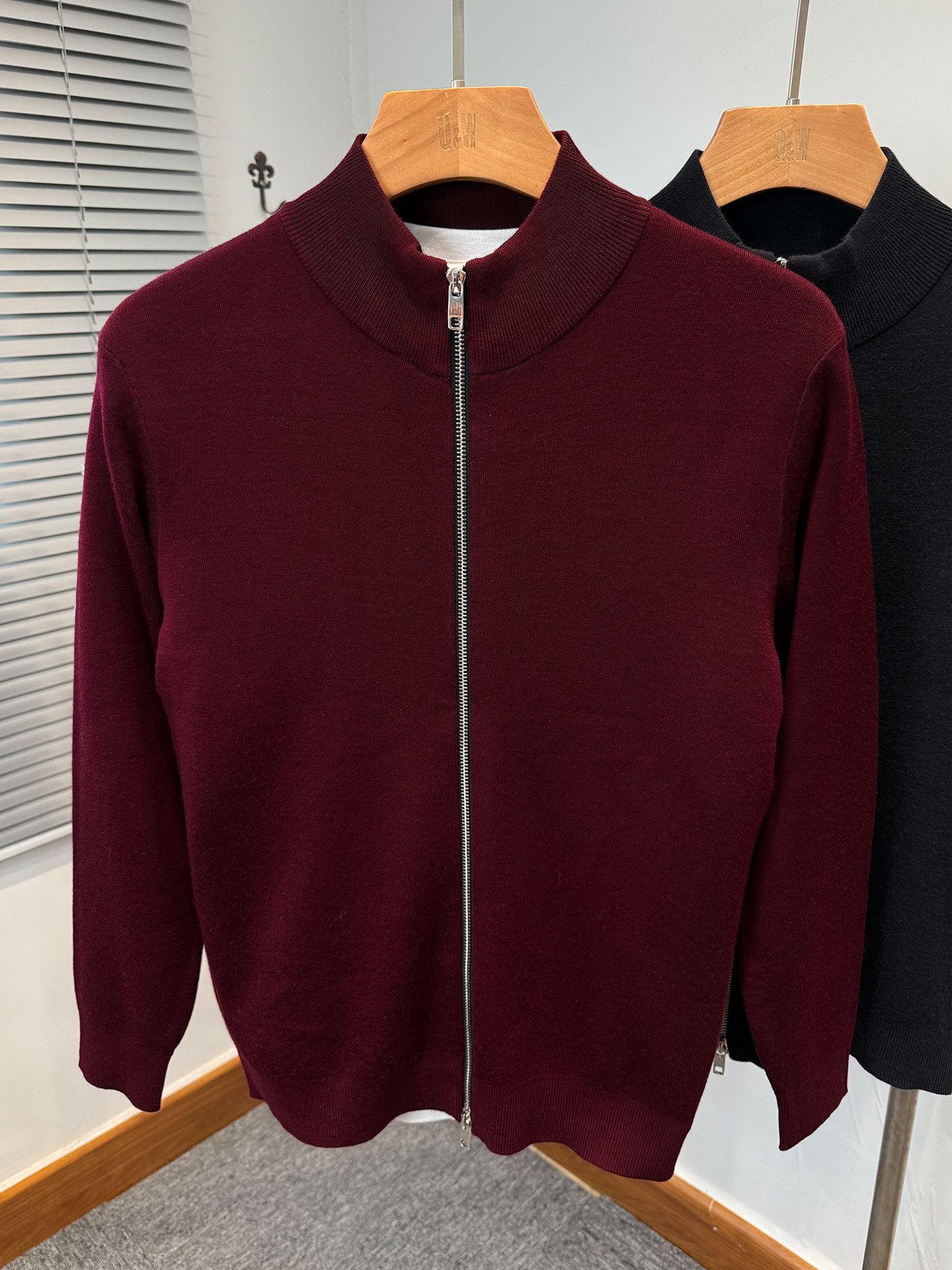 Главная страница > 2025秋冬季100%精纺绵羊毛开衫男半高领商务休闲纯色毛衣外套