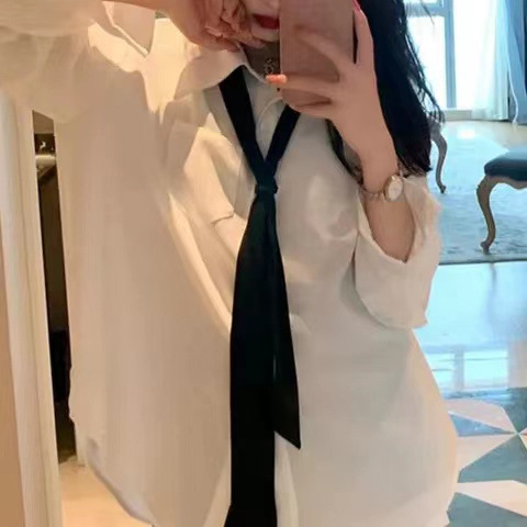 Главная страница > Свободная рубашка средней длины в ленивом стиле, новинка, женская маленькая Повседневная Уличная белая рубашка в стиле ретро, топ на осень