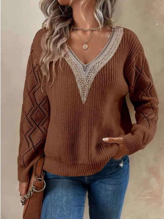 Главная страница > Трансграничный экспортный европейский и американский трикотаж Amazon на весну и осень с v-образным вырезом 2023, новый свободный повседневный пуловер, женский трикотаж