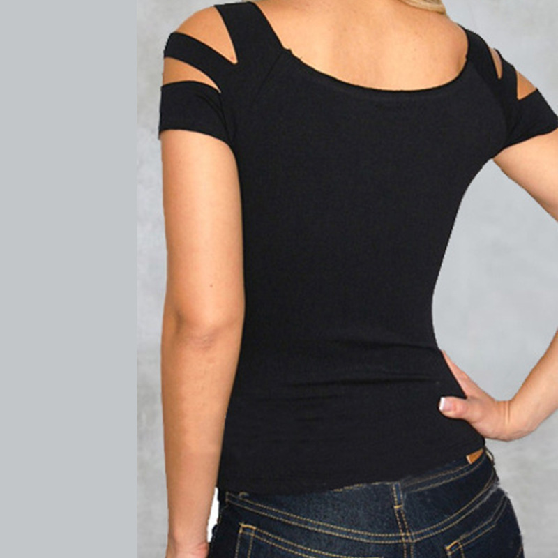 Главная страница > Европейская и американская летняя новая Сексуальная футболка с рваными разрывами, универсальная футболка для показа на груди, топ для ночного клуба, женская одежда с вырезами на плечах