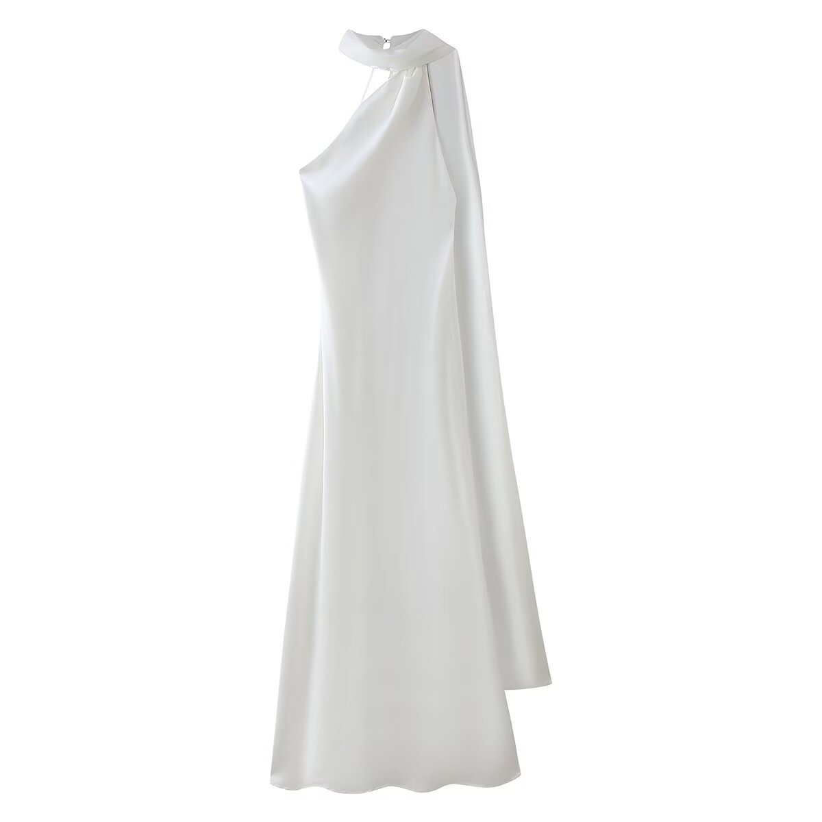 Главная страница > Летнее новое женское платье в европейском и американском стиле, модное, облегающее, простое, с бантом на шее, без спинки, длинное.
