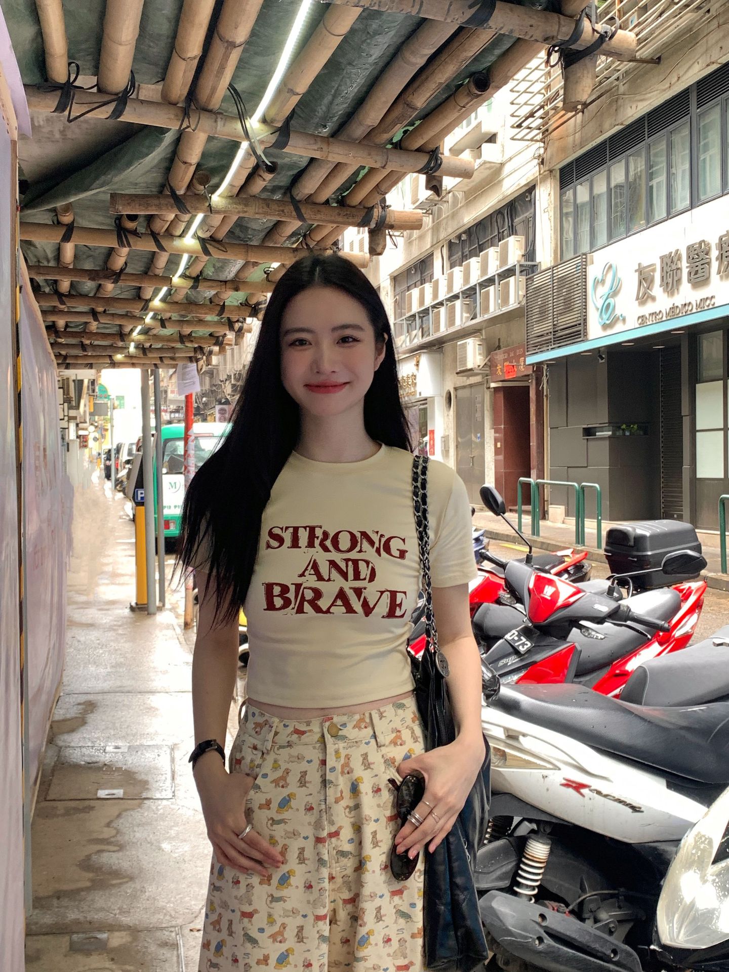 Главная страница > НОВАЯ OPEN Футболка с буквенным принтом женская с короткими рукавами 2023 Летняя мода с круглым вырезом 82553