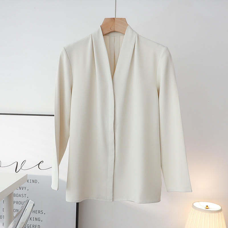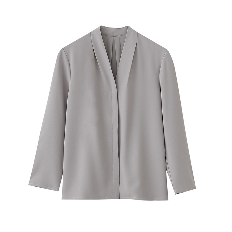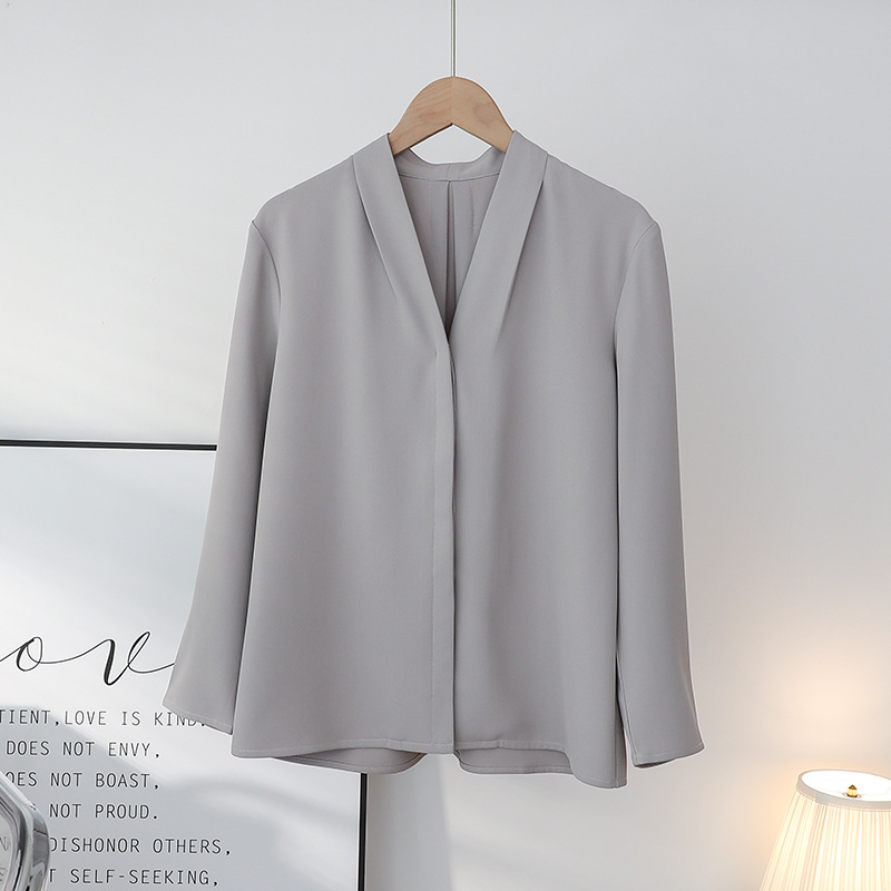Главная страница > Осень-зима 2025 года, новый стиль, легкая зрелая французская рубашка с v-образным вырезом и длинными рукавами для женщин, профессиональная рабочая одежда, серо-белый топ для интервью для женщин