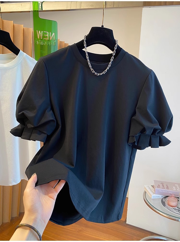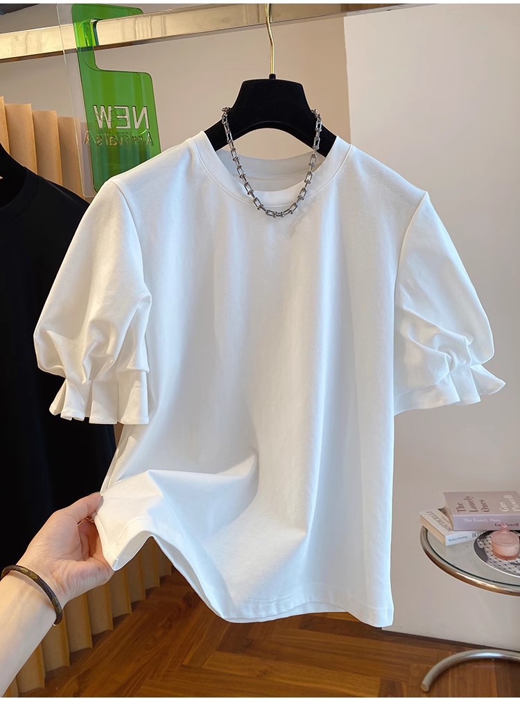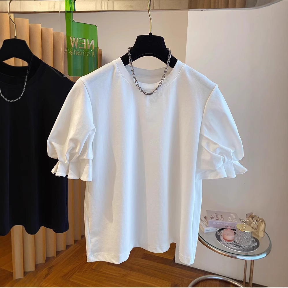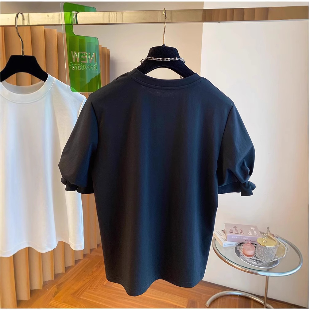 Главная страница > Высокий дизайн чувство ниши бутон пузырь рукава футболка женская короткая рукава 2025 новая свободная хлопковая нижняя рубашка