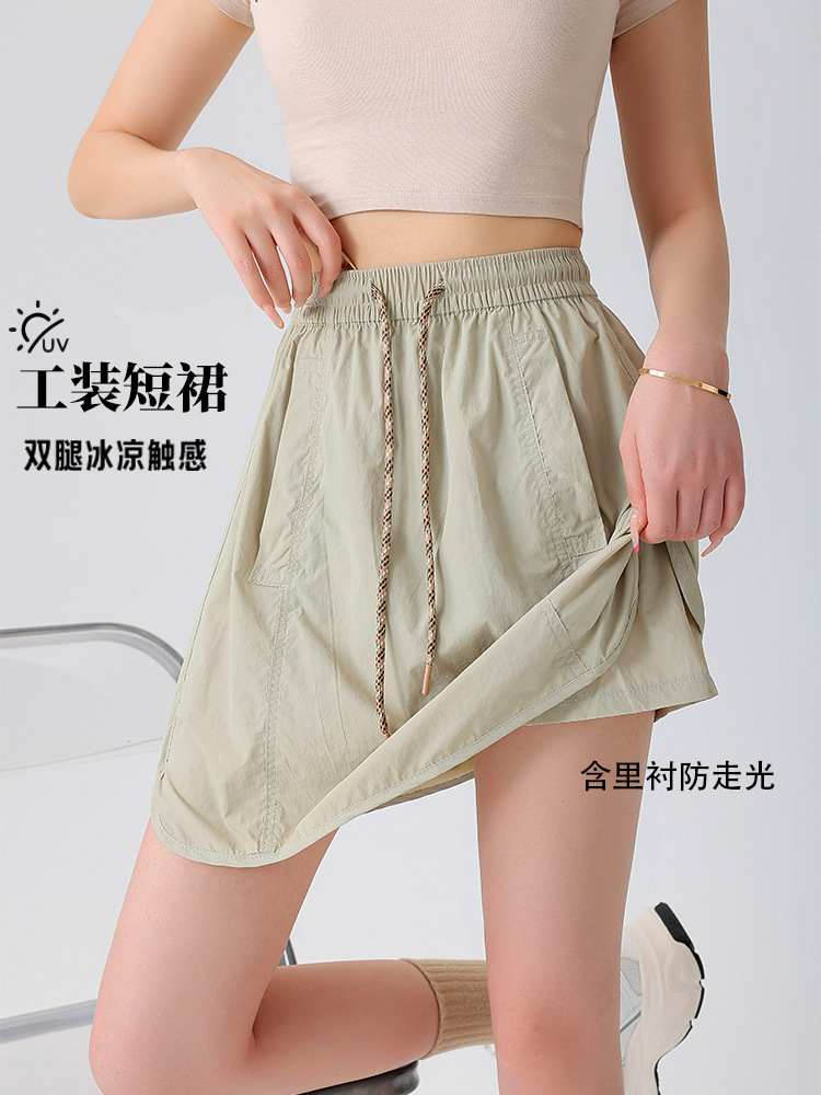 Новая рабочая одежда, юбка, брюки для женщин, летние быстросохнущие шорты трапециевидной формы из ледяного шелка с высокой талией, юбка, свободная короткая юбка с защитой от воздействия