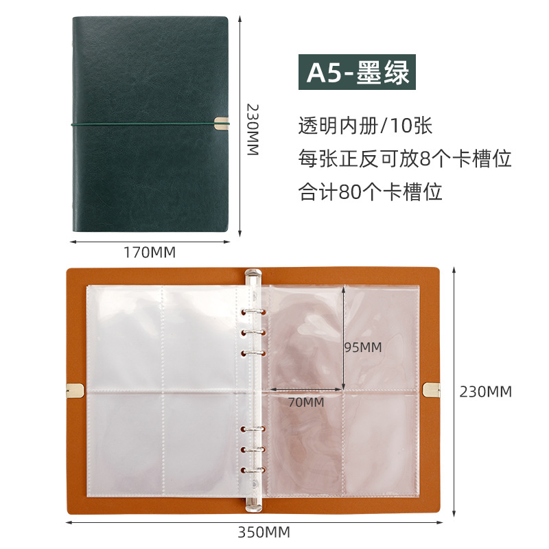 Внутренняя книга формата А5 темно-зеленого цвета, прозрачная.