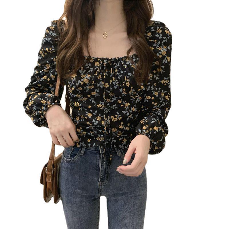 Главная страница > Женская рубашка с длинными рукавами и французским квадратным воротником с цветочным принтом, весна-осень 2023, уникальный топ, тонкая короткая дизайнерская нишевая рубашка