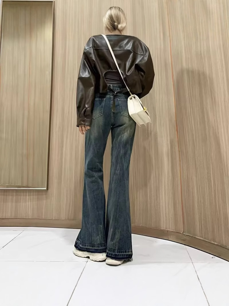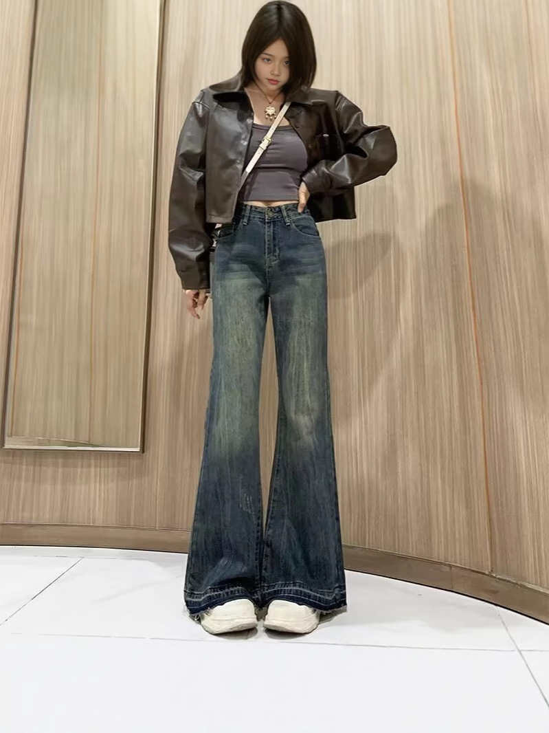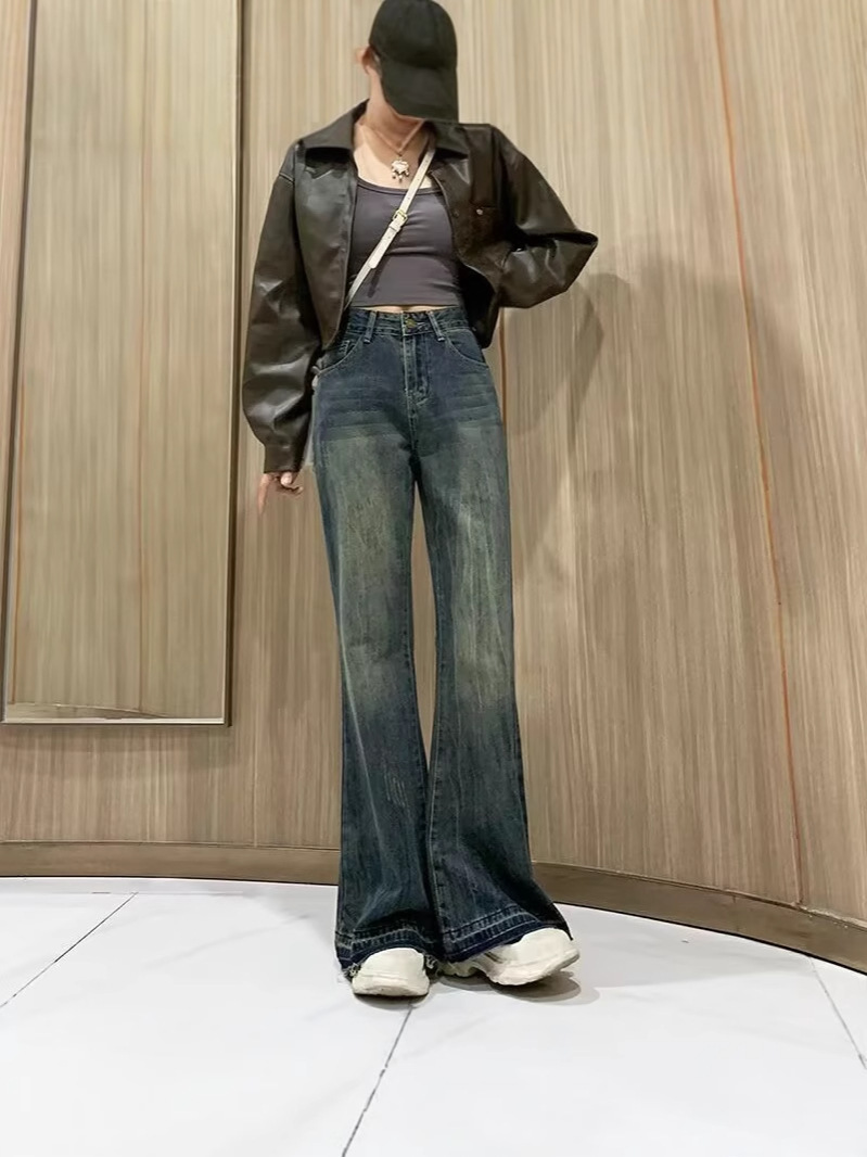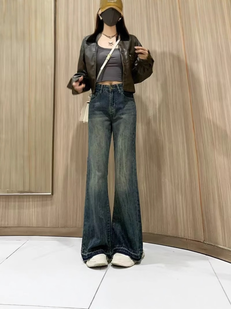 Главная страница > Слегка толстая носить американские ретро широкие джинсы женский осенний и зимний большой размер толстый мм дизайн рыхлый тонкий брюки