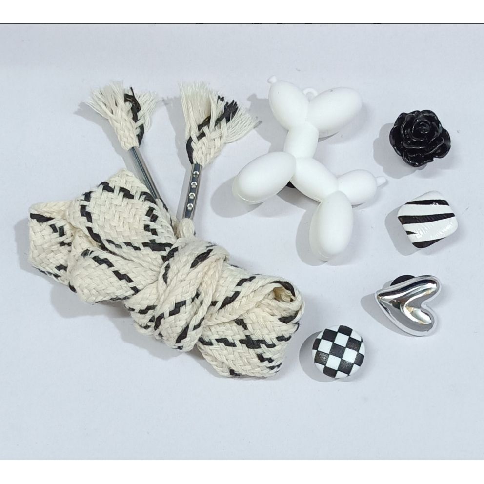 Белые ремешки Черно-белые шерстяные шарики с пушками [Набор]