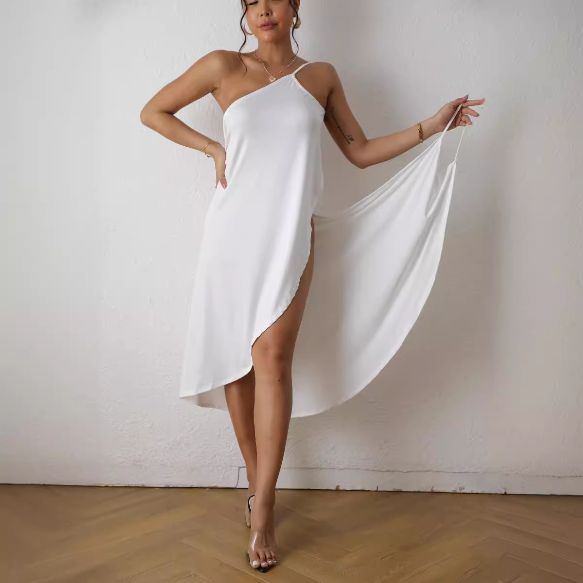 Главная страница > Европейский и американский Amazon 2025, новая однотонная сексуальная пляжная юбка, платье на подтяжках, короткая юбка для женщин, 7 цветов, 8 размеров, оптовая продажа