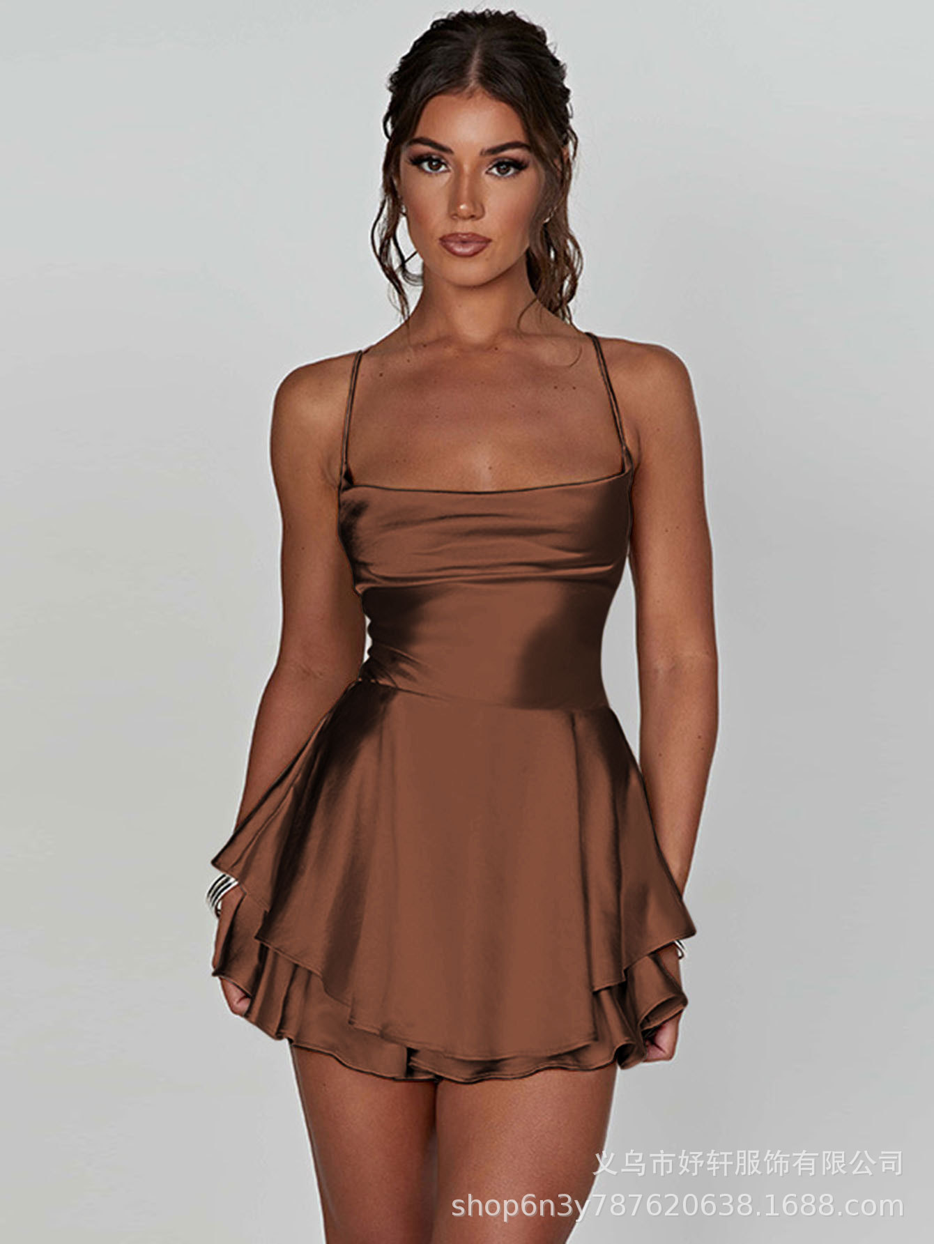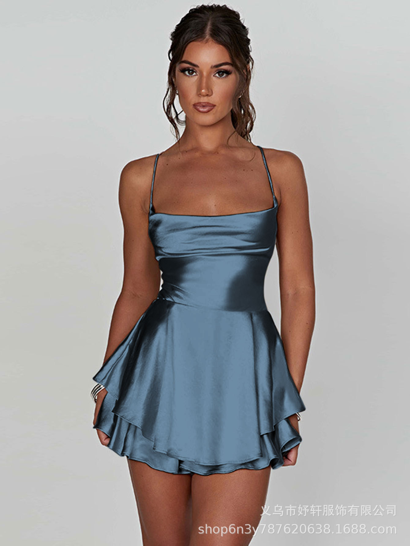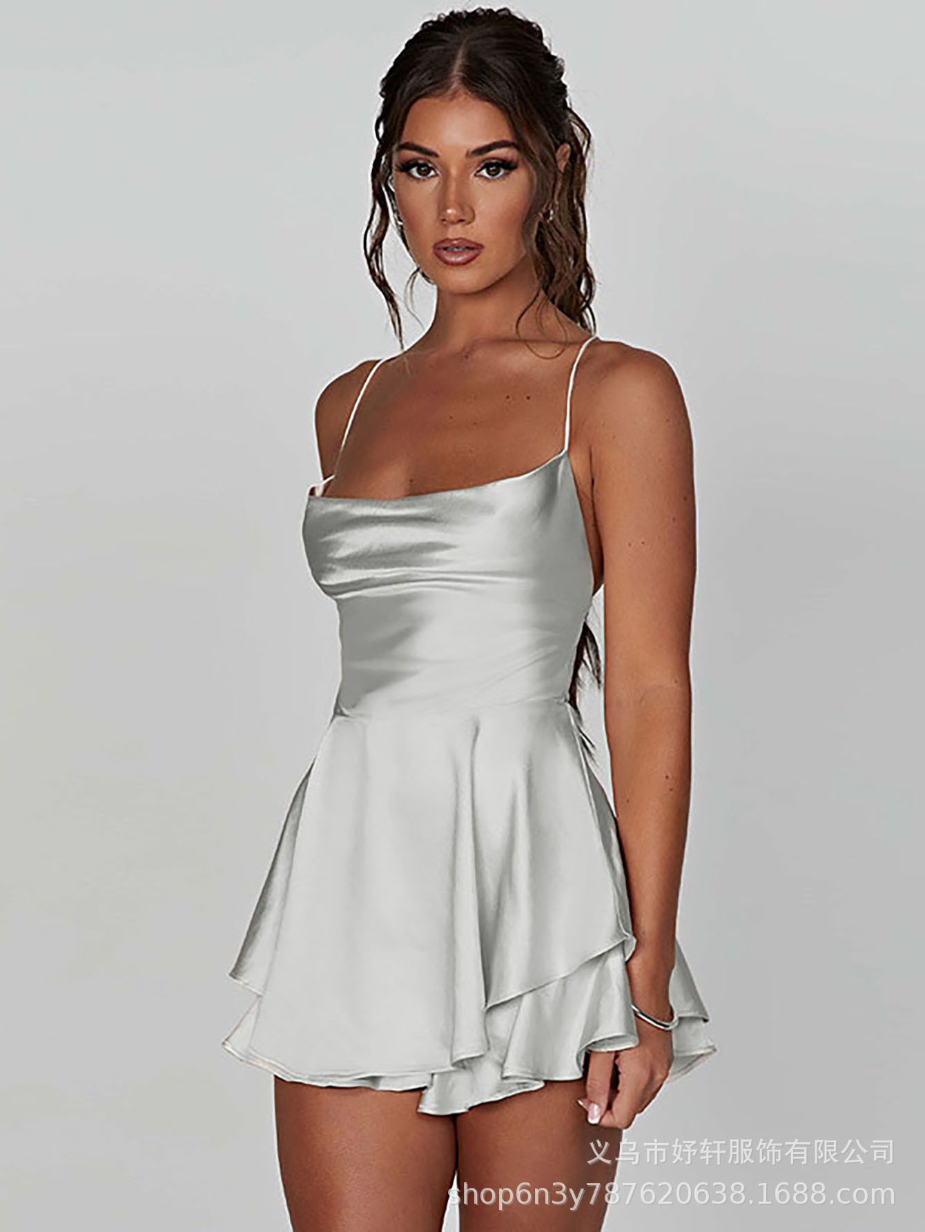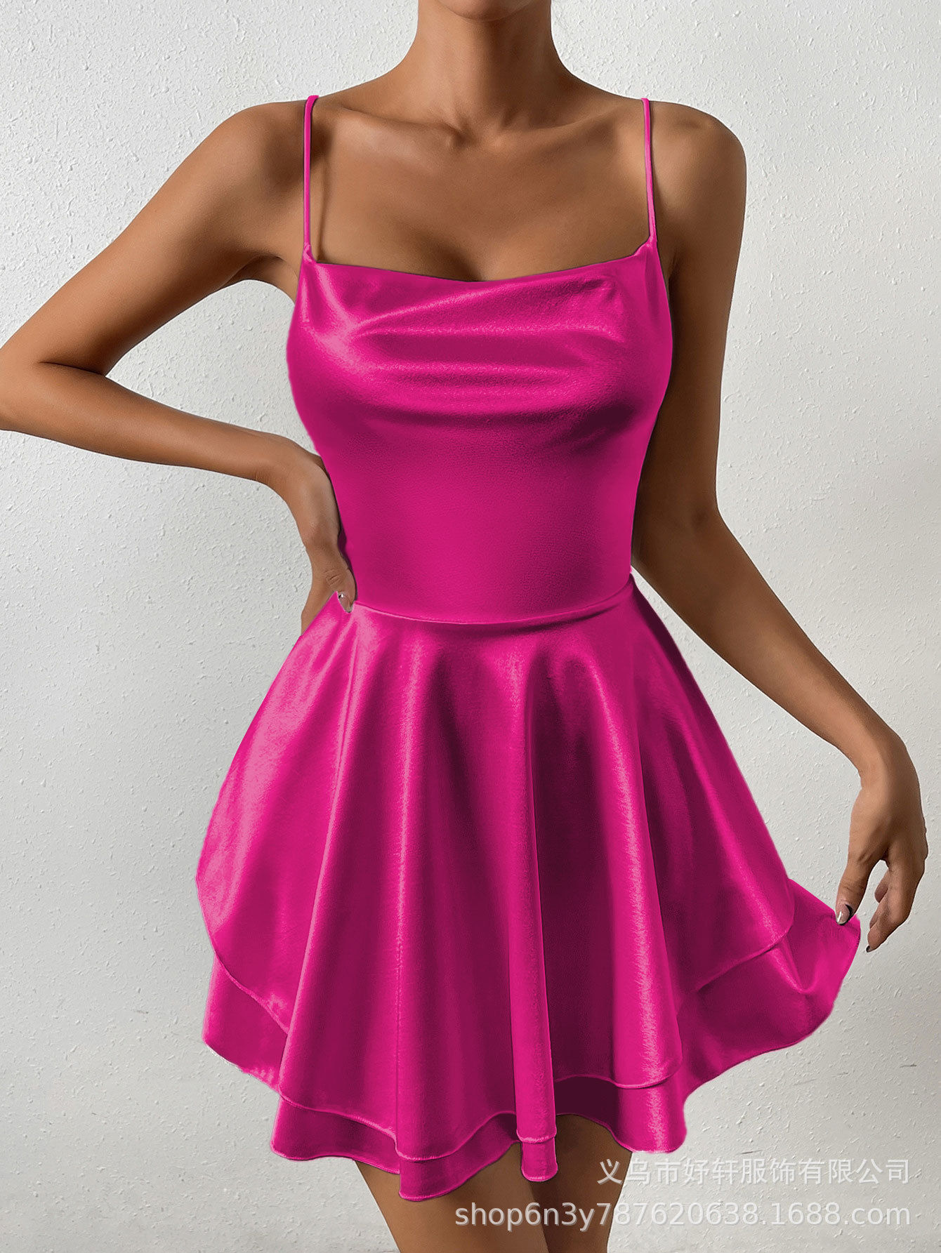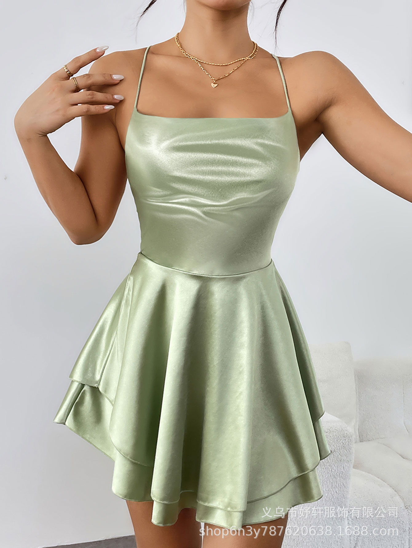 Главная страница > Лето 2025 г., популярное в Европе и Америке сексуальное плиссированное женское платье на бретельках с открытой спиной и шнурком, атласный топ.