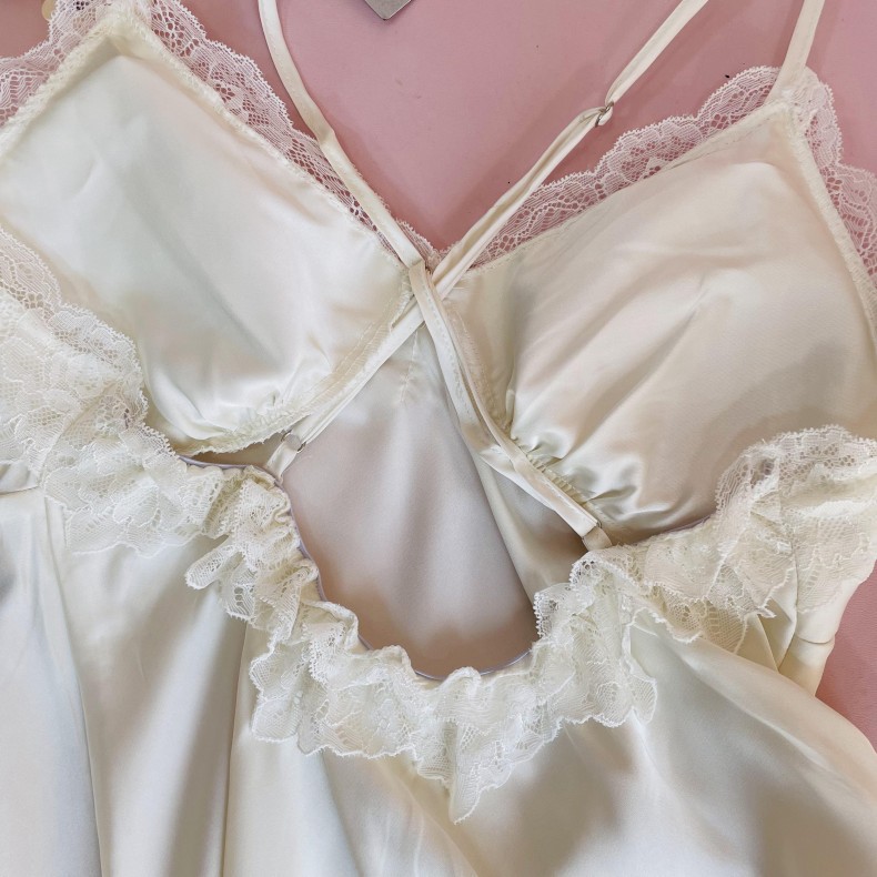 Главная страница > Новинка 2025: Женский пижамный комплект из двух предметов (тонкая ночная сорочка-комбинация и халат) из ледяного шелка для весны и осени, с подкладкой для груди, Amazon