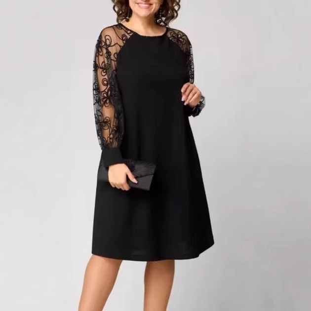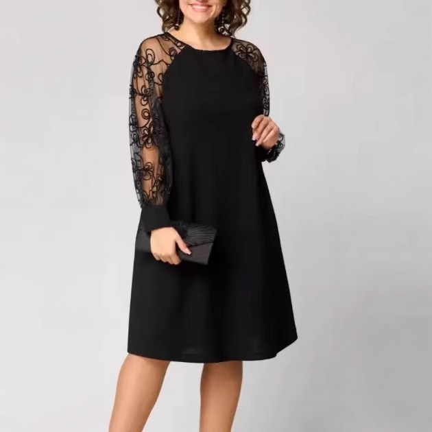 Главная страница > Европа и США сращивание кружева весна и осень новый 2025 темперамент женская мода тонкое платье юбка большой размер