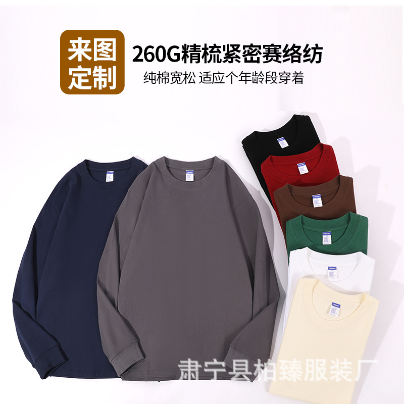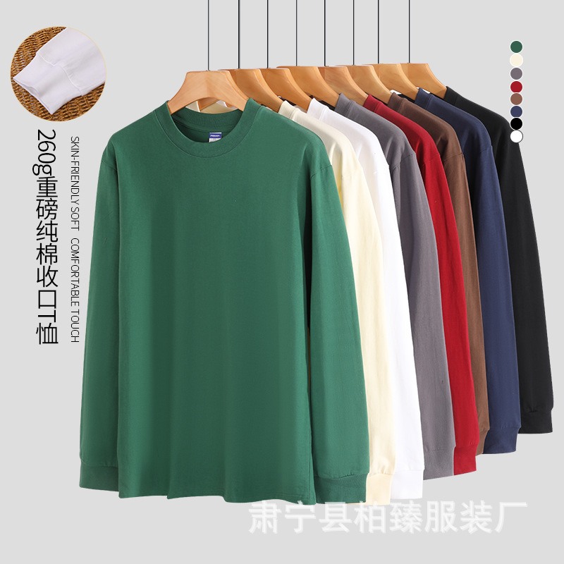Прямая трансляция тяжелых хлопчатобумажных 260 г с длинным рукавом футболка с круглым вырезом с нижней стороны белая футболка для мужчин оптовая продажа
