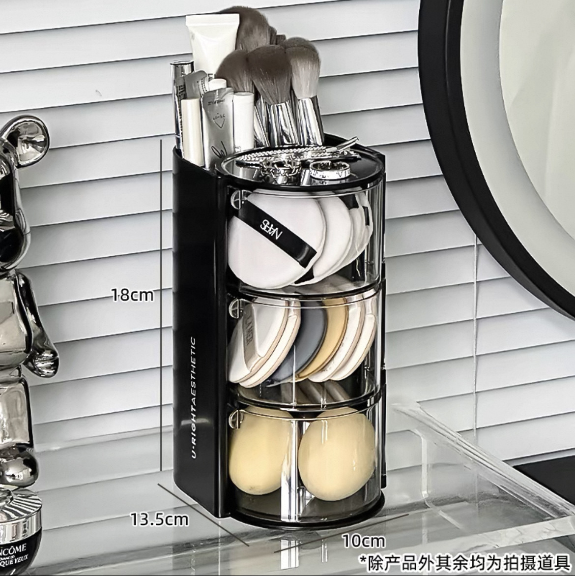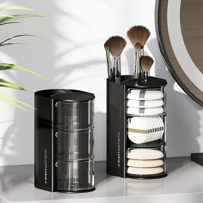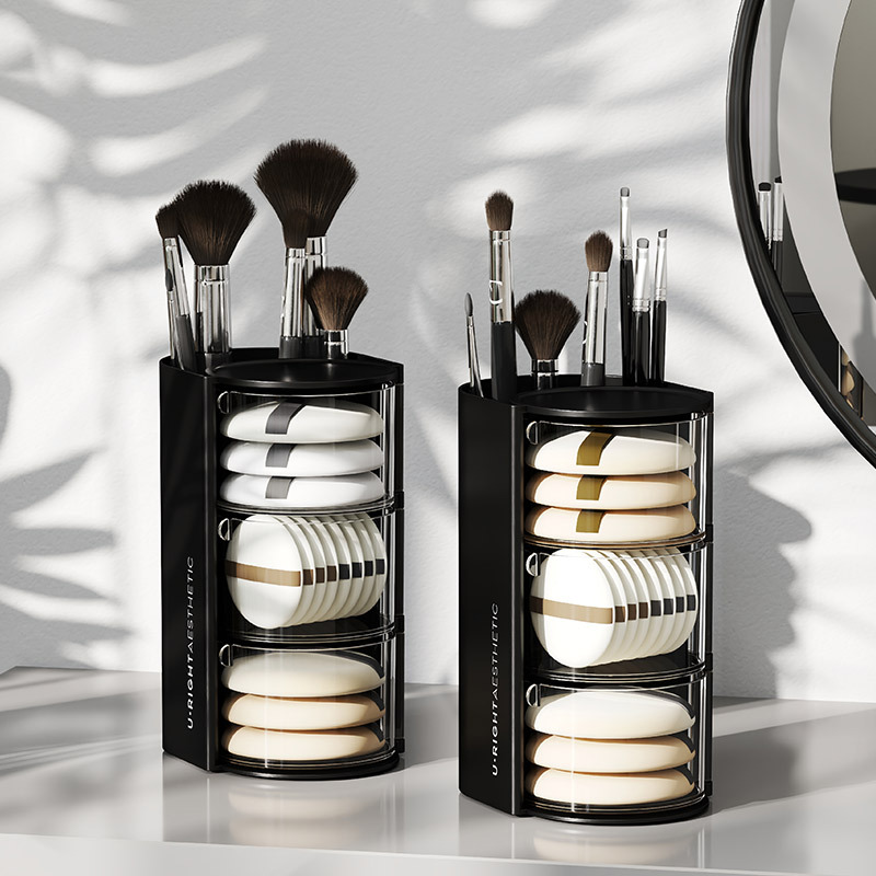 Коробка для хранения пуховок - три слоя [легкая роскошная черная]
