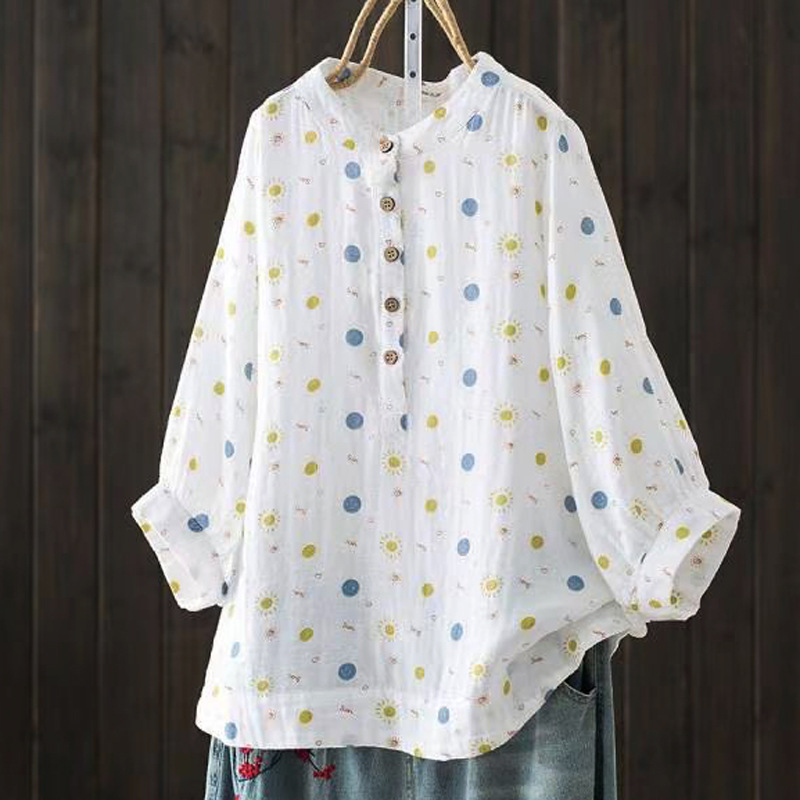 Двухслойная хлопчатобумажная пряжа рубашка сломанный цветочный воротник детская хлопчатобумажная пряжа свободная большая размер японская и корейская рубашка производитель оптовая женская одежда