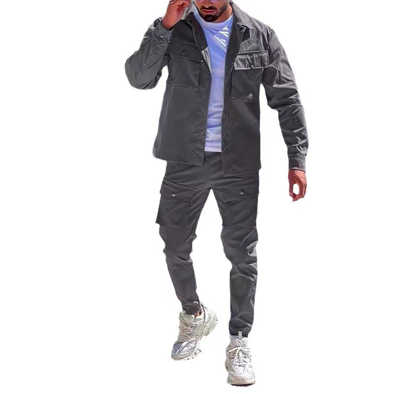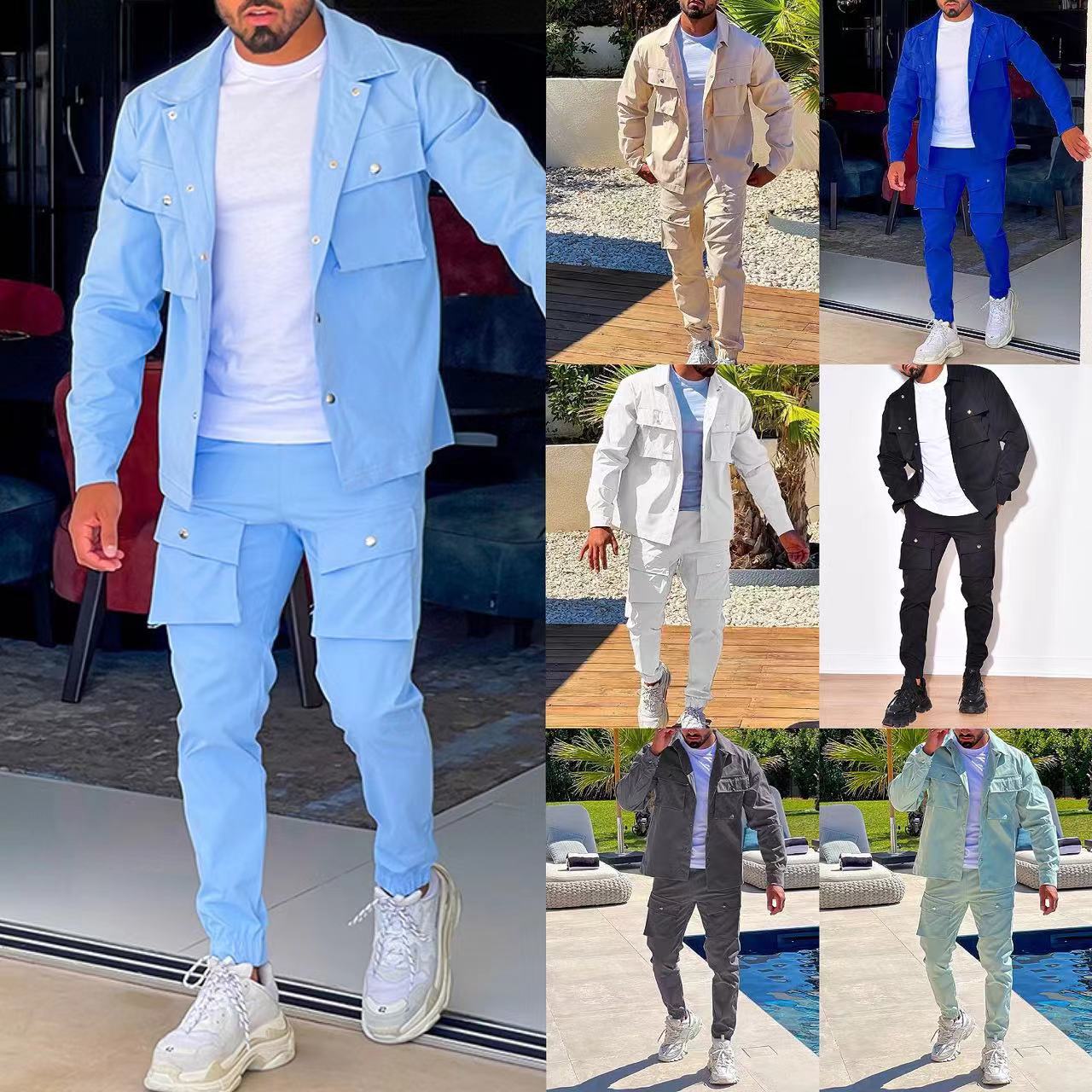 Главная страница > Трансграничный спортивный набор мужской комбинезон с длинными рукавами брюки из двух частей с отворотом модная куртка куртка модный мужской костюм