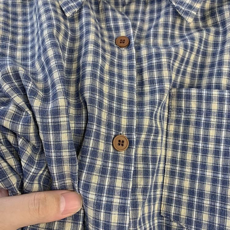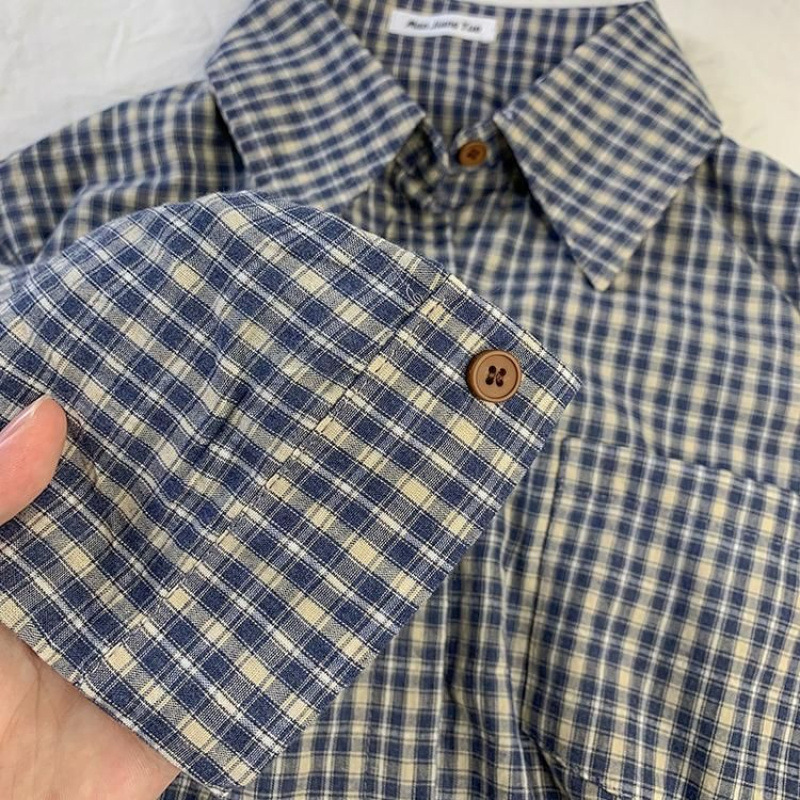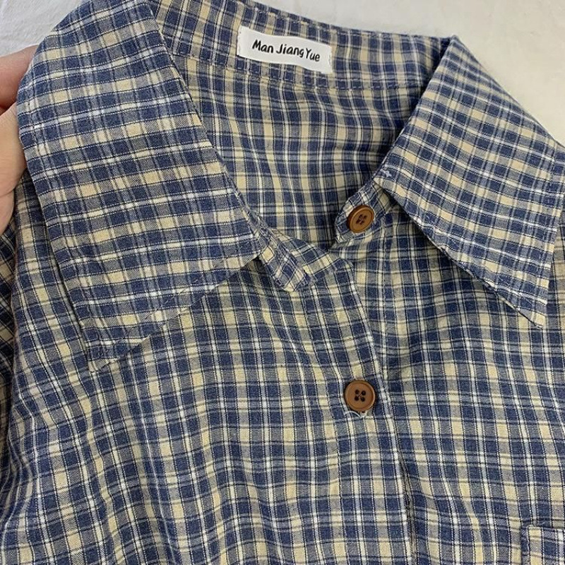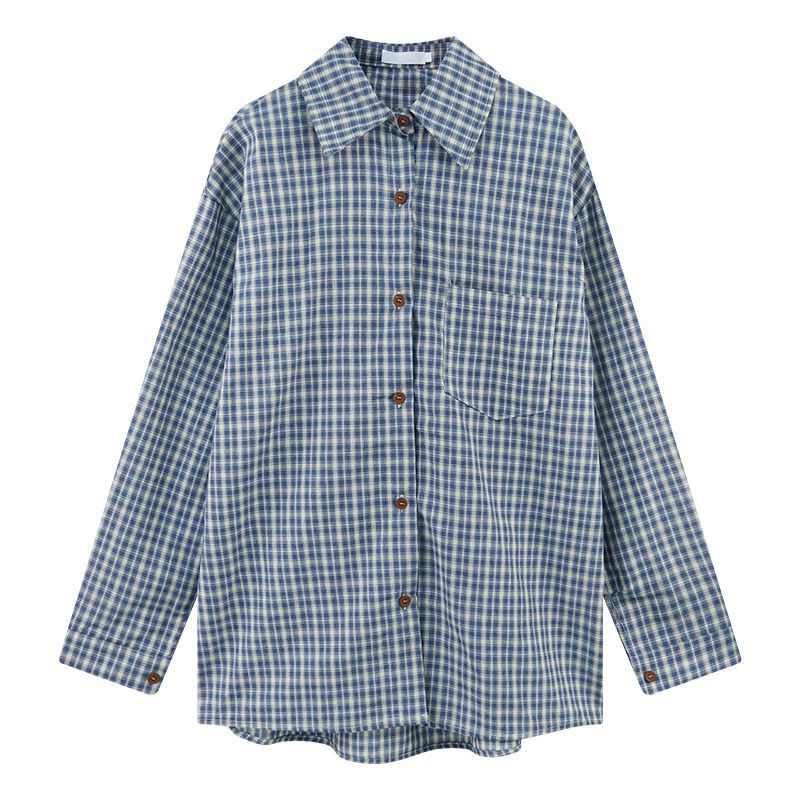 Главная страница > Ретро синяя клетчатая рубашка топ женский весна и осень 2025 новый дизайн чувство нишевые свободные повседневные рубашки с длинными рукавами
