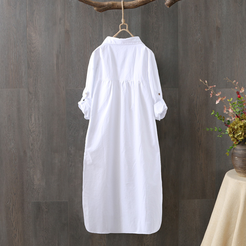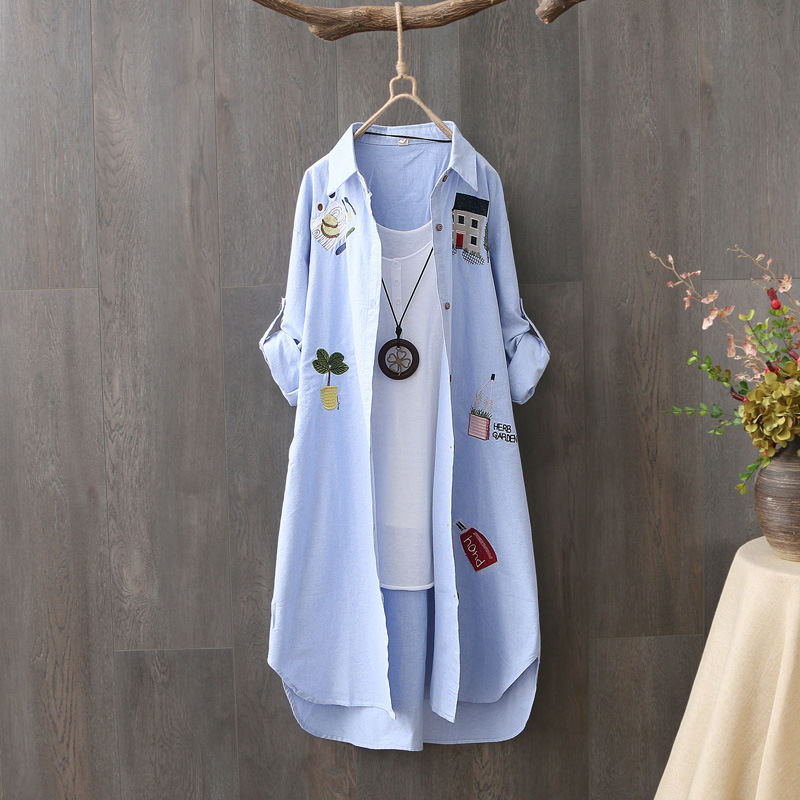 Главная страница > Весенне-осенняя хлопковая Повседневная рубашка в Корейском стиле, женская Свободная рубашка с длинными рукавами с художественной вышивкой, Солнцезащитная рубашка средней длины