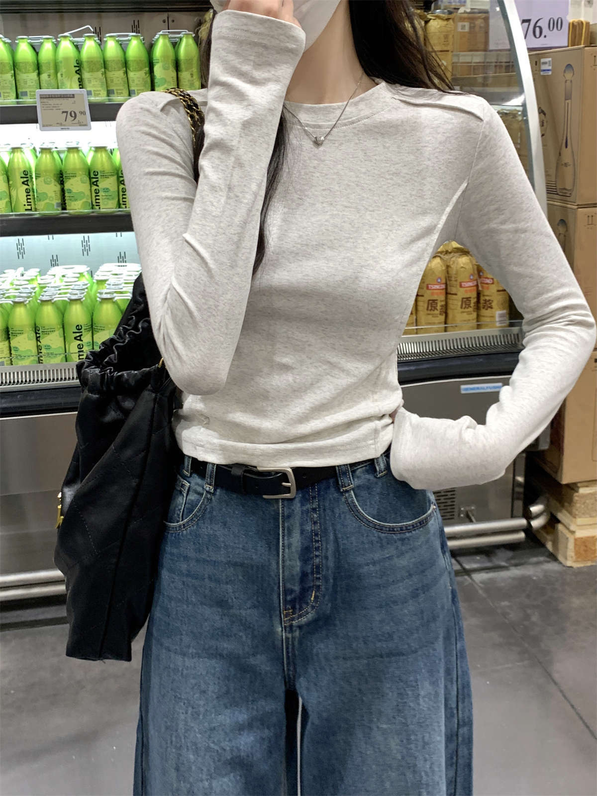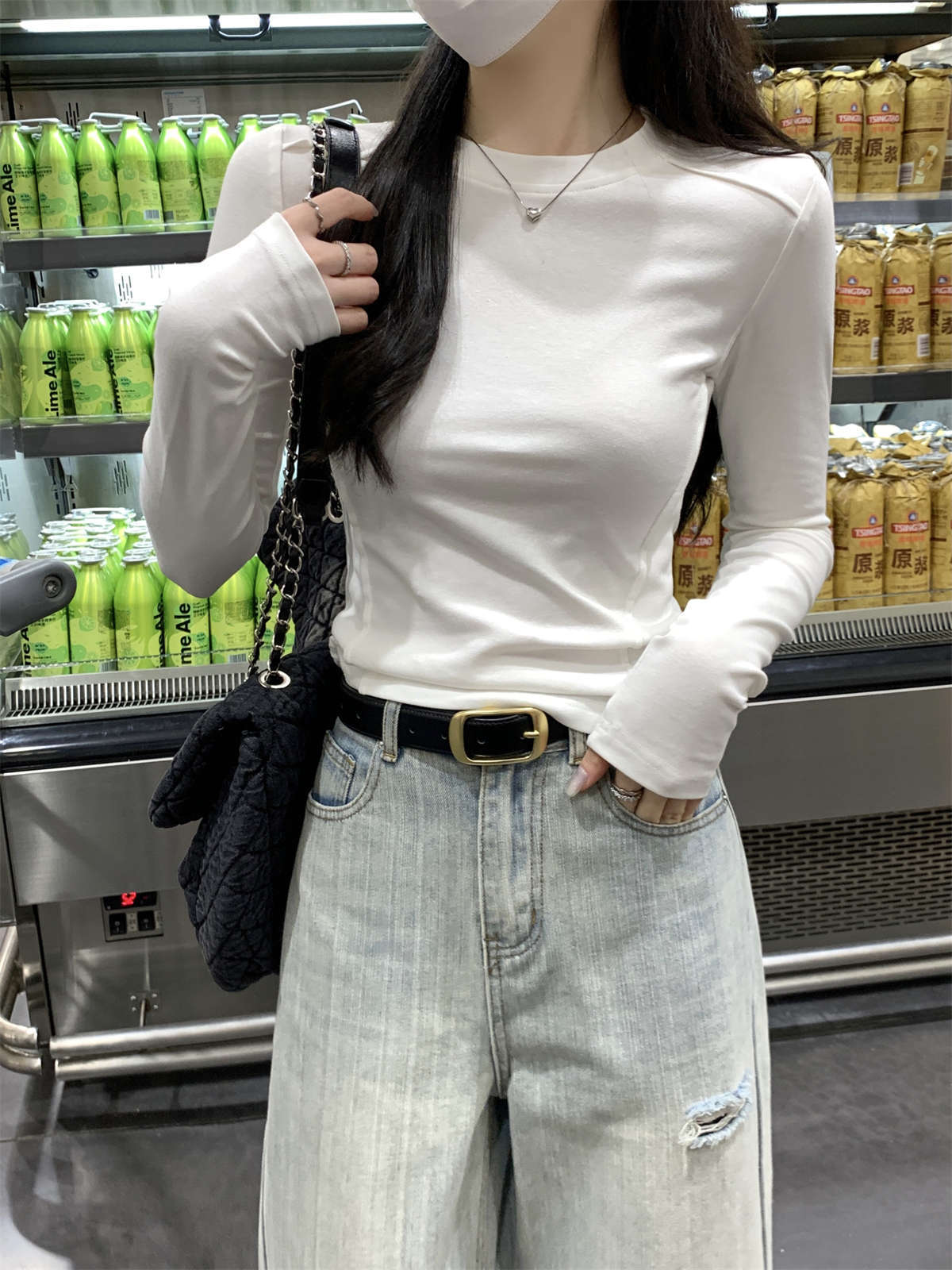 Главная страница > Женская однотонная белая футболка для дропшиппинга, дизайн «рыбья кость», стандартный крой на плечах, длинный рукав, подходит для весны, осени и зимы, облегающий крой, идеальный как базовый слой.