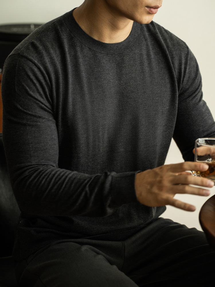 Главная страница > Мужская трикотажная рубашка с длинным рукавом из шелковистой шерсти тутового шелкопряда, 16 игл, импортная машинная вязка, весна 2025, однотонная, базовая