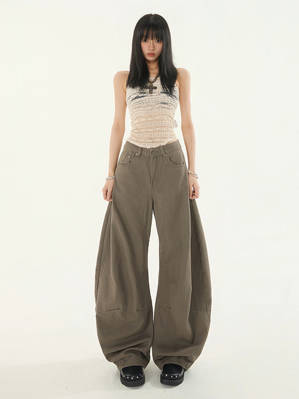 Главная страница > Оранжевый шелковый женский # американский высокий уличный широконогий ятаган повседневные штаны простой и вертикальный мужской и женский силуэт