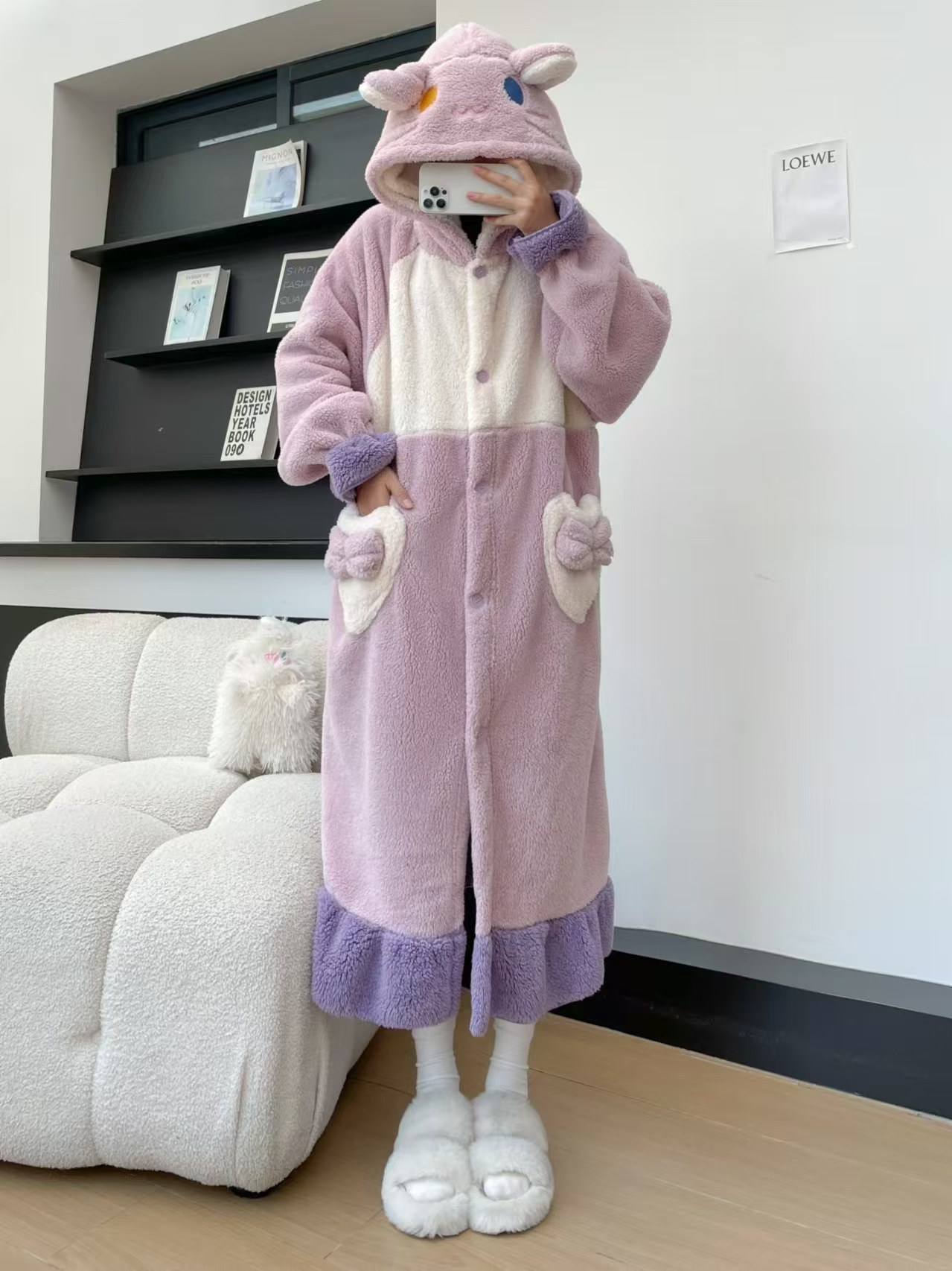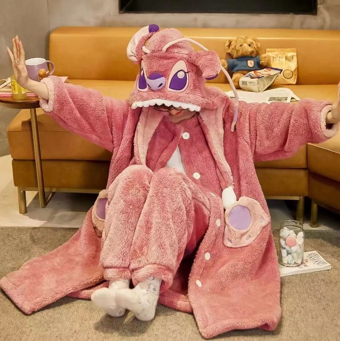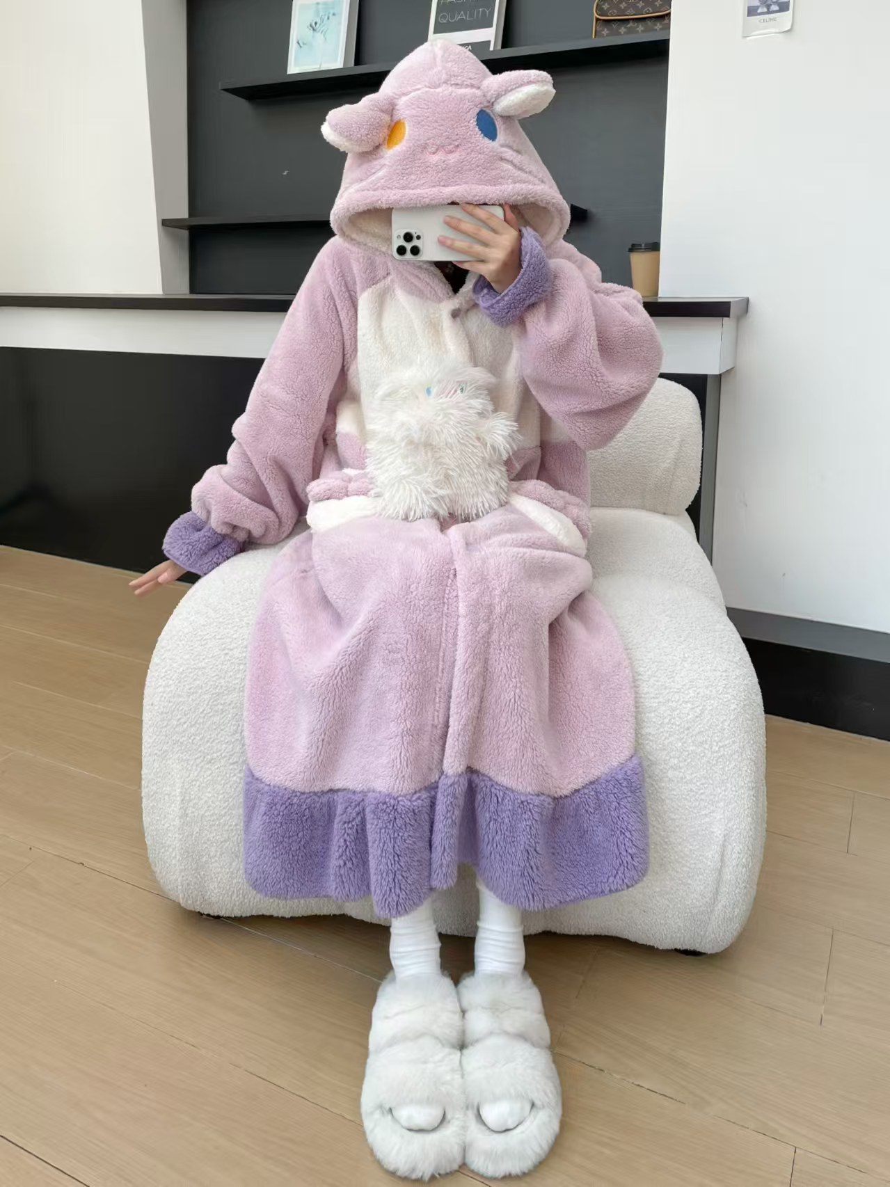 Главная страница > Симпатичная маленькая плюшевая ночная рубашка с енотом, Женская осенне-зимняя пижама из кораллового флиса, домашняя одежда, костюм