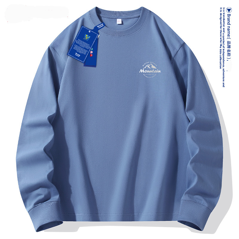 Голубой [манжеты с резьбой и длинные рукава] небольшой горный логотип 040.