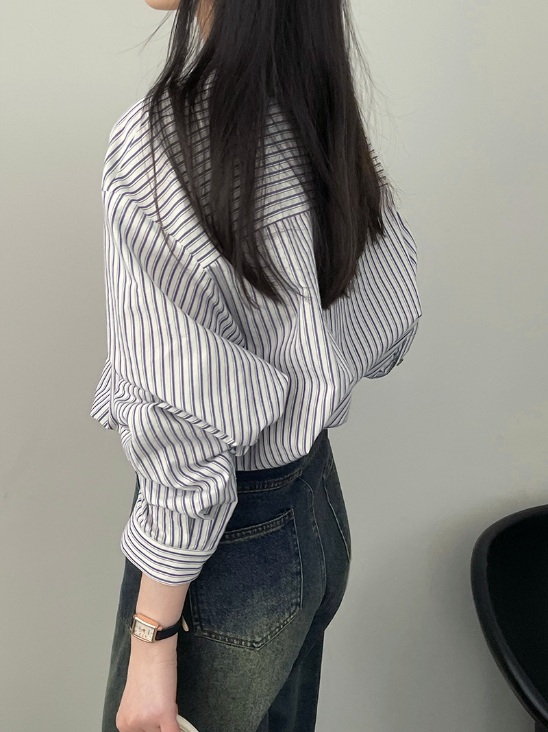 Главная страница > [Chistanchegxi] Женская классическая рубашка, универсальная, свободная, утягивающая, топ с длинными рукавами в корейском стиле, 2363, высокая и модная элегантная